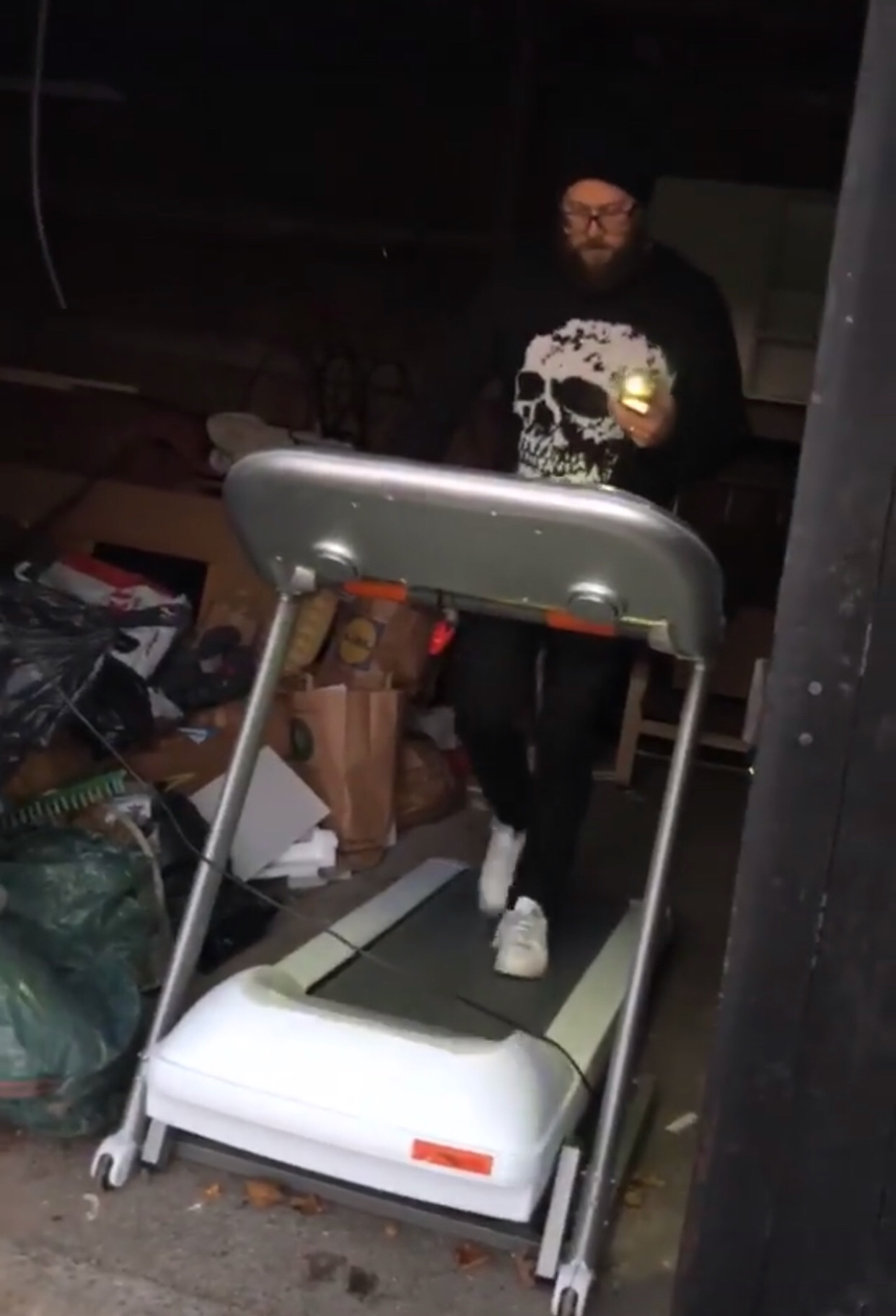 På eftermiddagen sen var vi och hämtade ett löpband som vi köpte av våra vänner. Ibland är det bra att ens vänner är in och läser på bloggen. Dom hade den stod i ett skjul utanför huset, det är där Tony står och provar det. Vi skulle haft den på övervåningen men fick inte upp den för trappen.