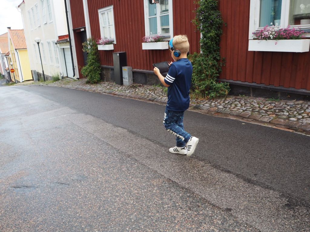 Vi strosade runt inne i Västervik också. En vacker stad, så mysigt! Milo var så inne i sin film så han började med att gå med hörlurar och padda….. sen fick mamman säga stopp! 😀🛑