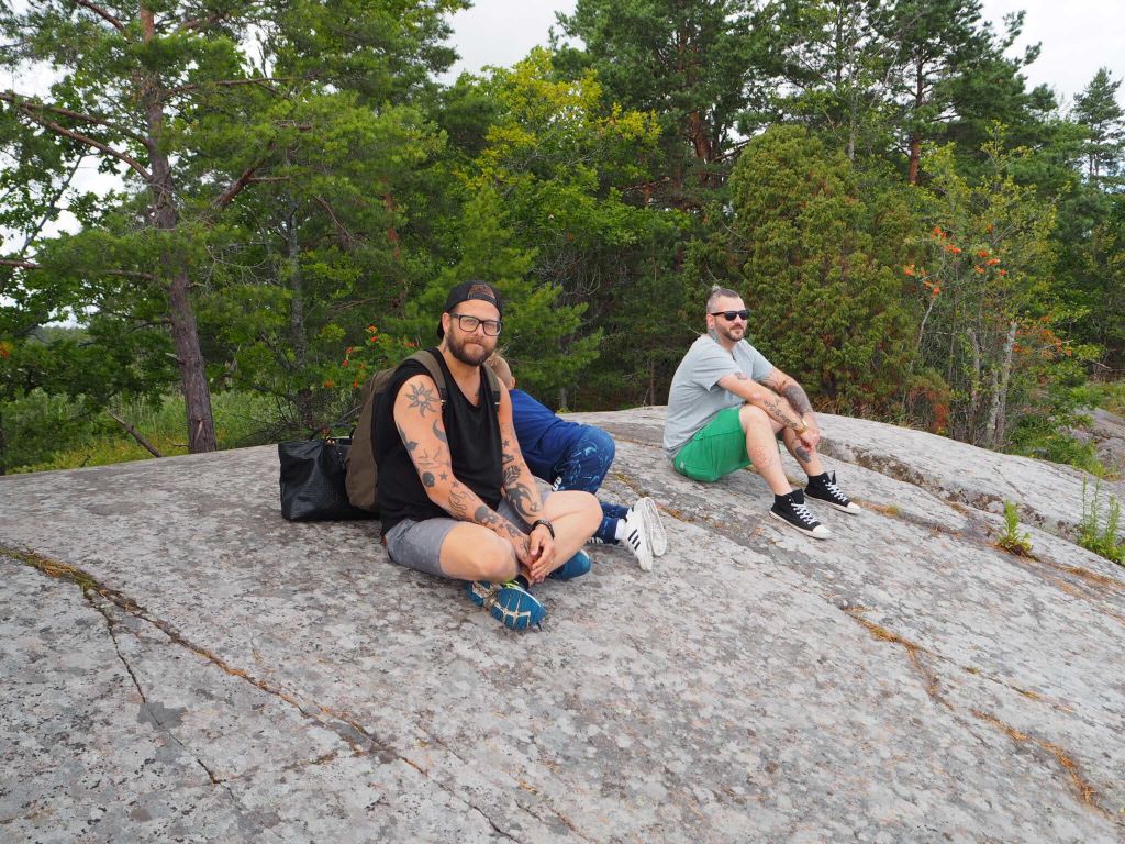 Alltså öarna på campingen är sååå häftiga. Bara små öar som med broar som binder dem samman. Vi satt på klipporna och njöt av vyerna runtom. Tobbe hittade en manet också. Iiiiiuuuuhhh…..