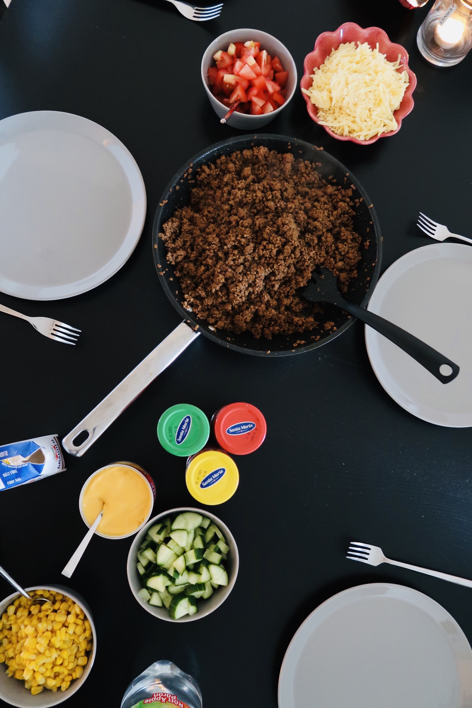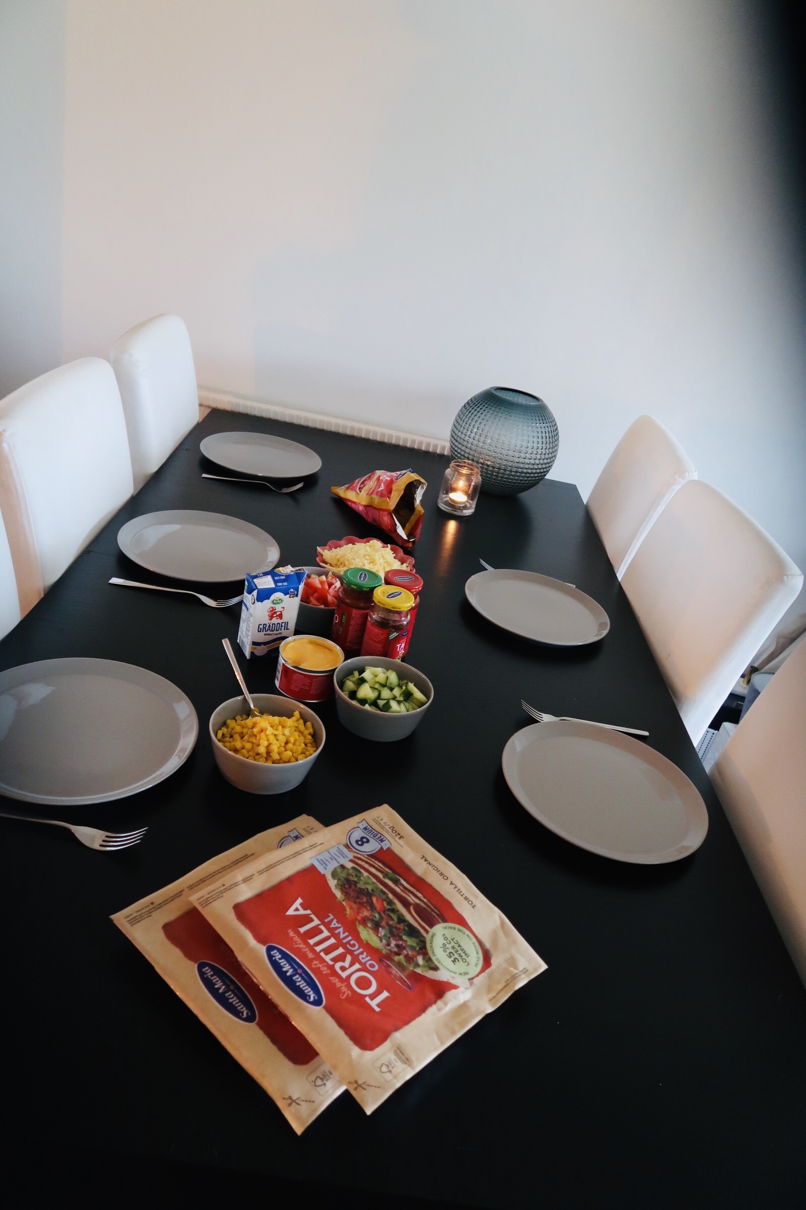 Så mysigt att få komma till färdigdukat ju, det var supergott dessutom. Varför är ofta tacos som man blir bjuden på så himla mycket godare? Jag fattar inte?