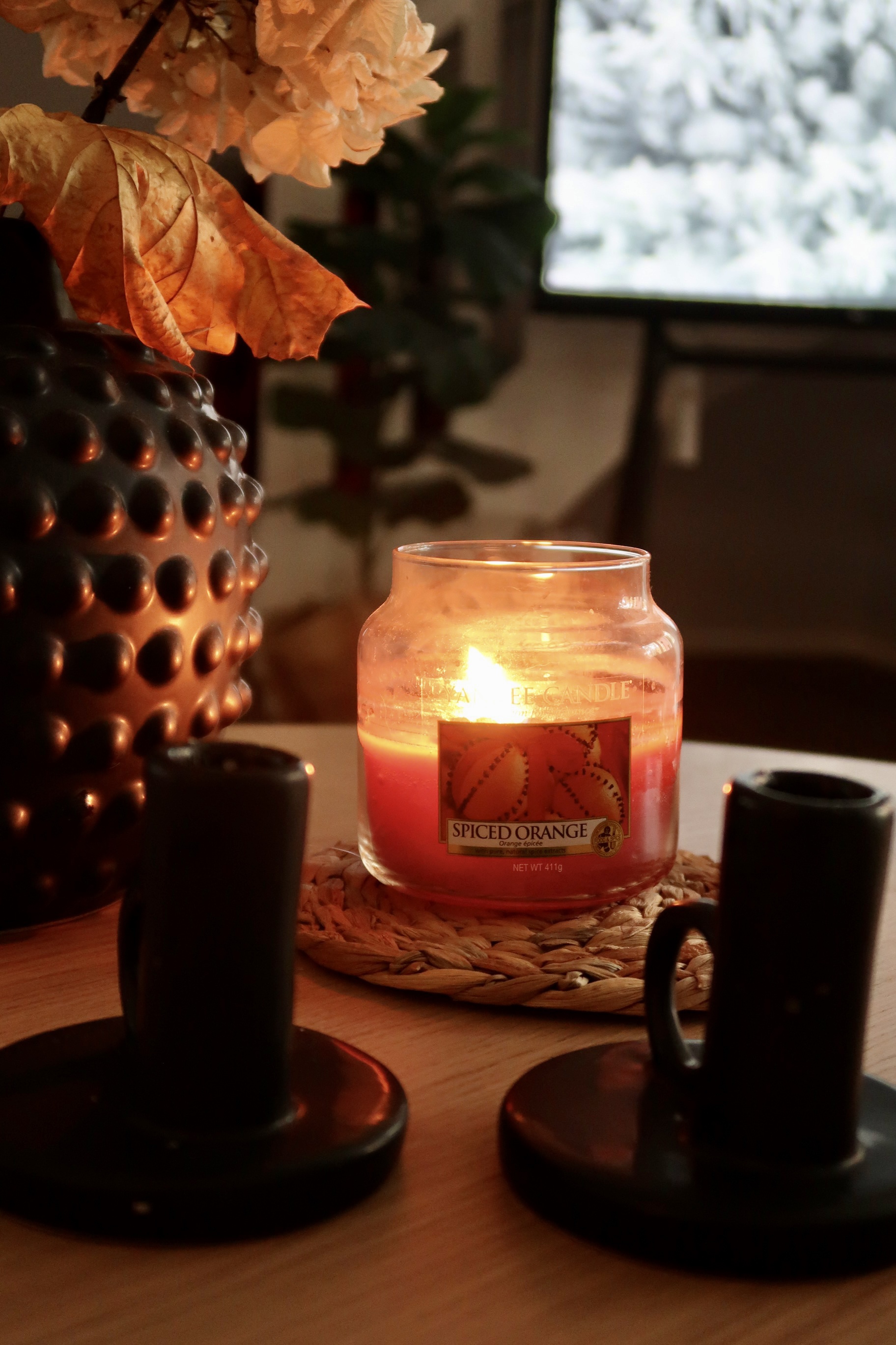 En sak som gjorde mig lite glad var att jag hittade detta ”juliga” doftljus från förra året. Detta doftar verkligen såååå gott och alldeles lagom jul. >>Spiced Orange<< (<-länk) heter den. Nu lyser det här och ger så mysigt doft. Tips: Det är 20% rabatt på det nu också.