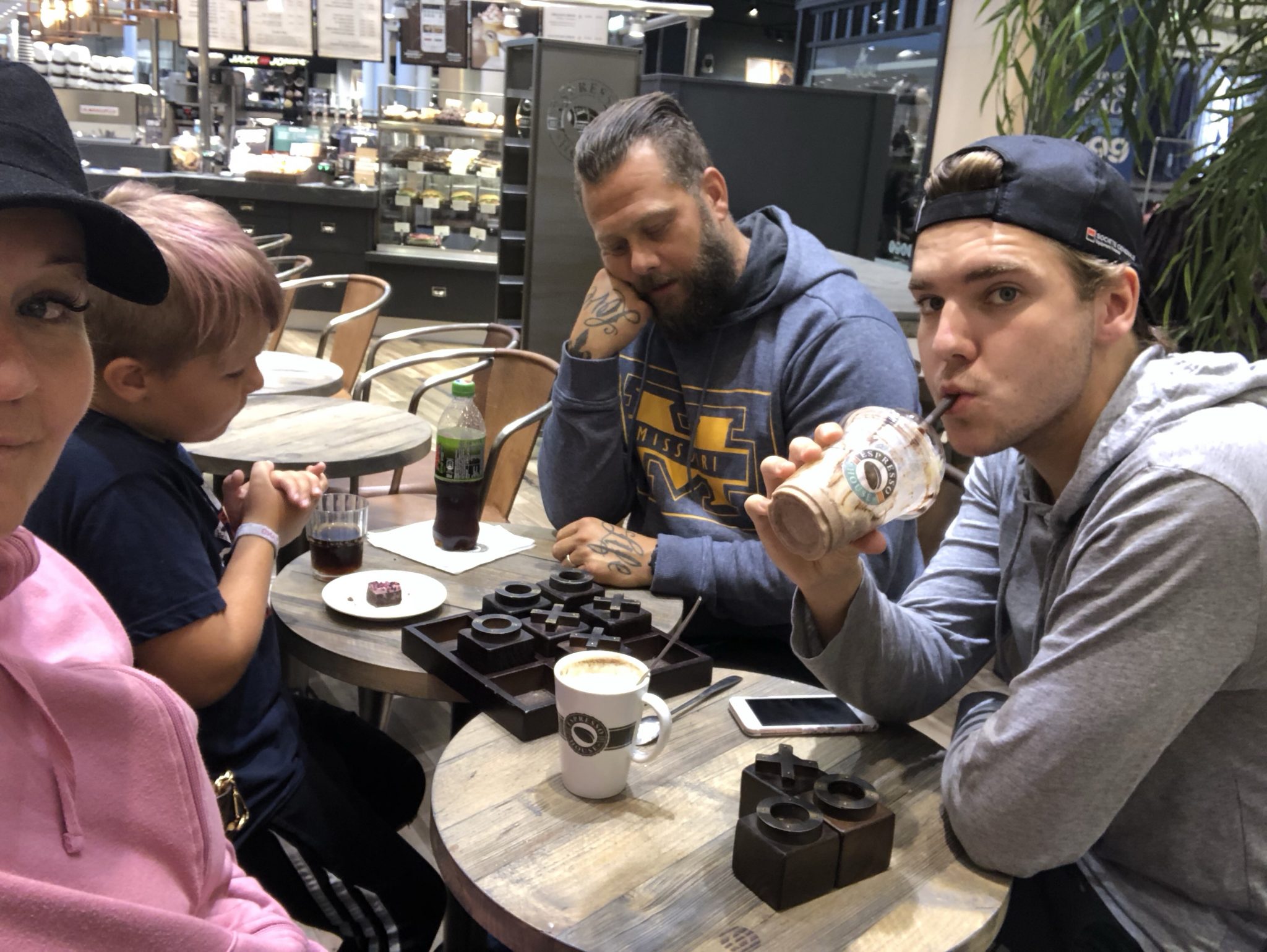 Medan vi väntade på att telefonen skulle lagas satte vi oss på Espresso House och fikade. Körde 3 i rad så det bara small om det. Jag var så sjukt trött igår så min hjärna hängde inte med överhuvudtaget, Milo spöade mig enkelt i 4 raka matcher. Fick svepa mitt kaffe och peppa mig själv för att visa var ”3 i rad skåpet” skulle stå. Haha….