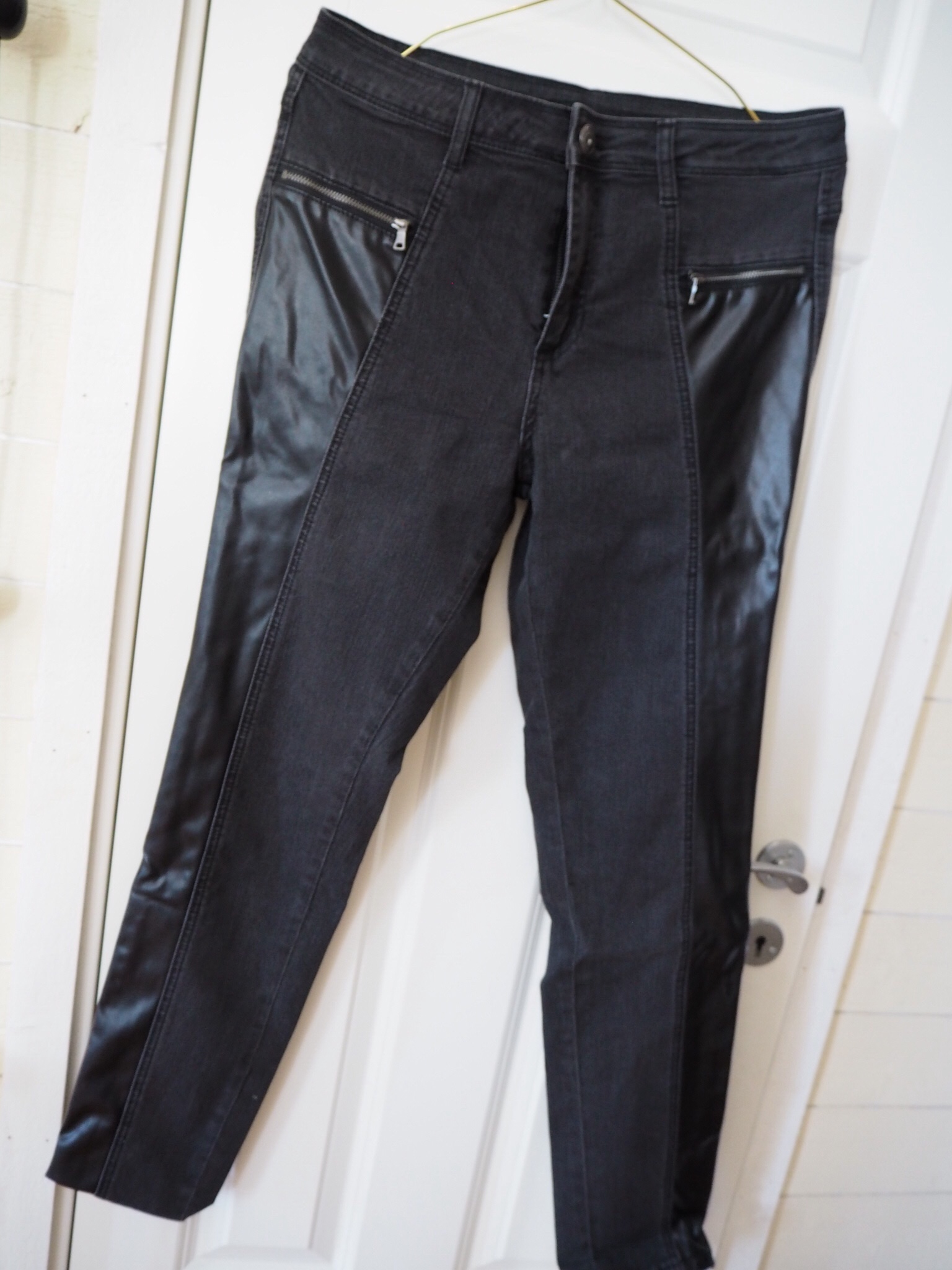 Svarta jeans med fejkskinn i sidorna från Cellbes. Dessa är använda endast en gång.