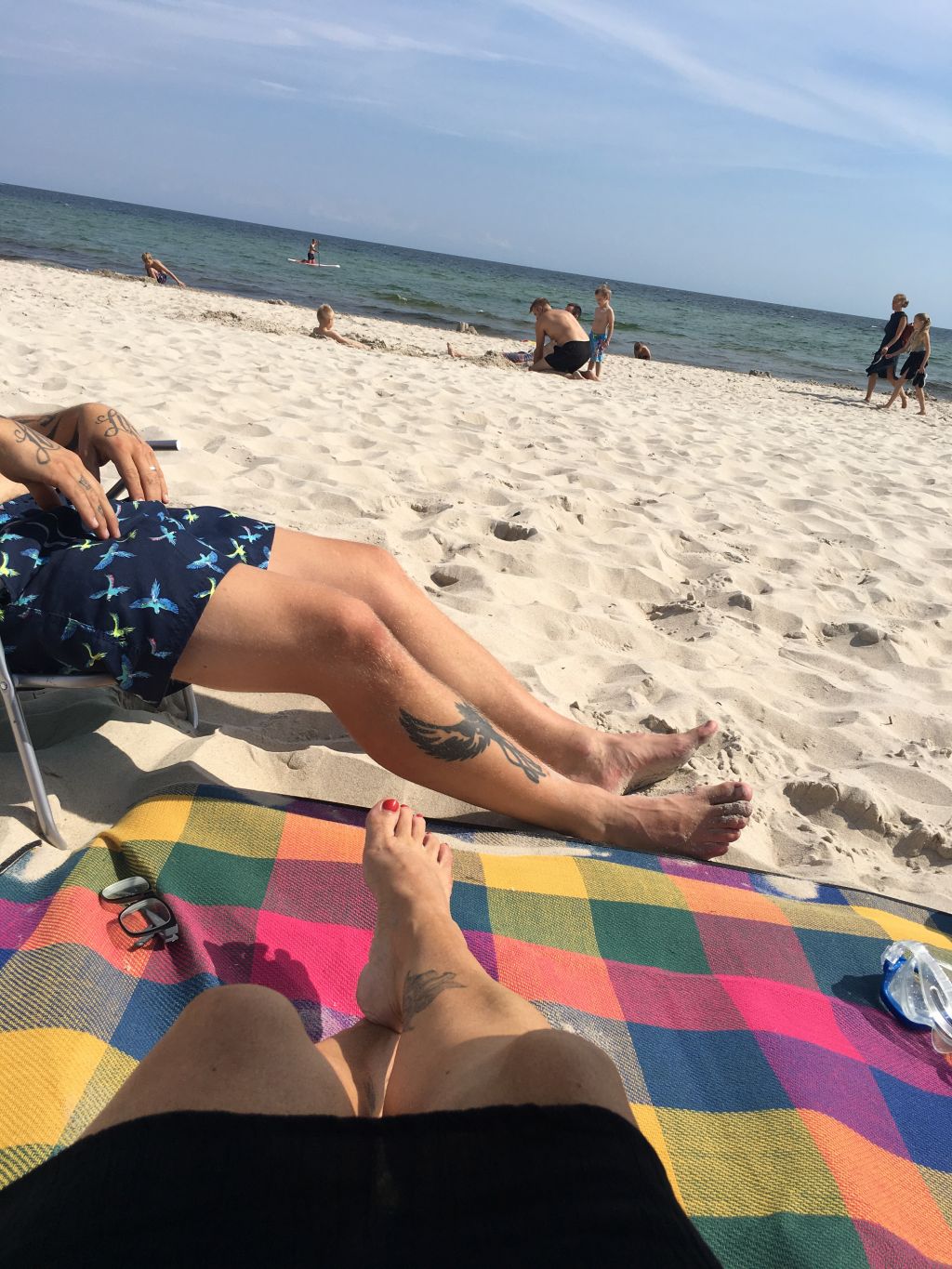 Efter att vi ätit frukost, placerat oss på campingen, fått upp förtältet och fixat lite så gick vi till stranden då solen sken så fint.