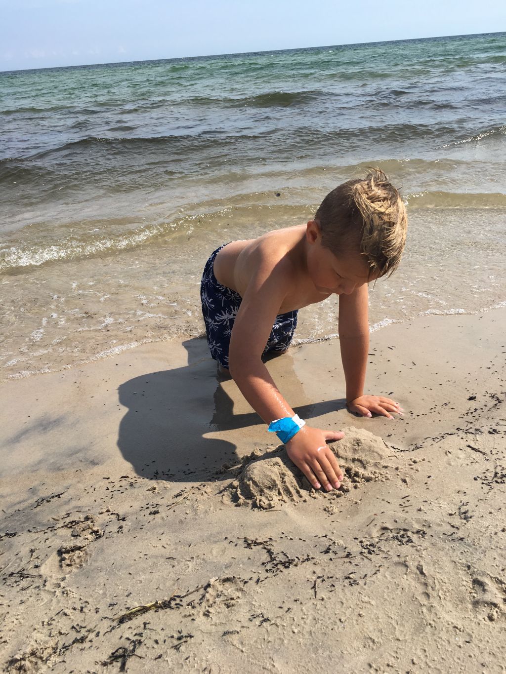 Milo lajade mest i vattnet. Han är som mig, ska försöka rädda alla djuren i världen. Här var det små små flugor som skruttade runt. Milo byggde en barriär av sand, ville inte de skulle forslas ut i vattnet. Lille tussen, precis som sin mamma. ❤️ Slutade dock med att en våg modell större kom och slet med hela skiten så det blev inte så mycket rädda flugor….