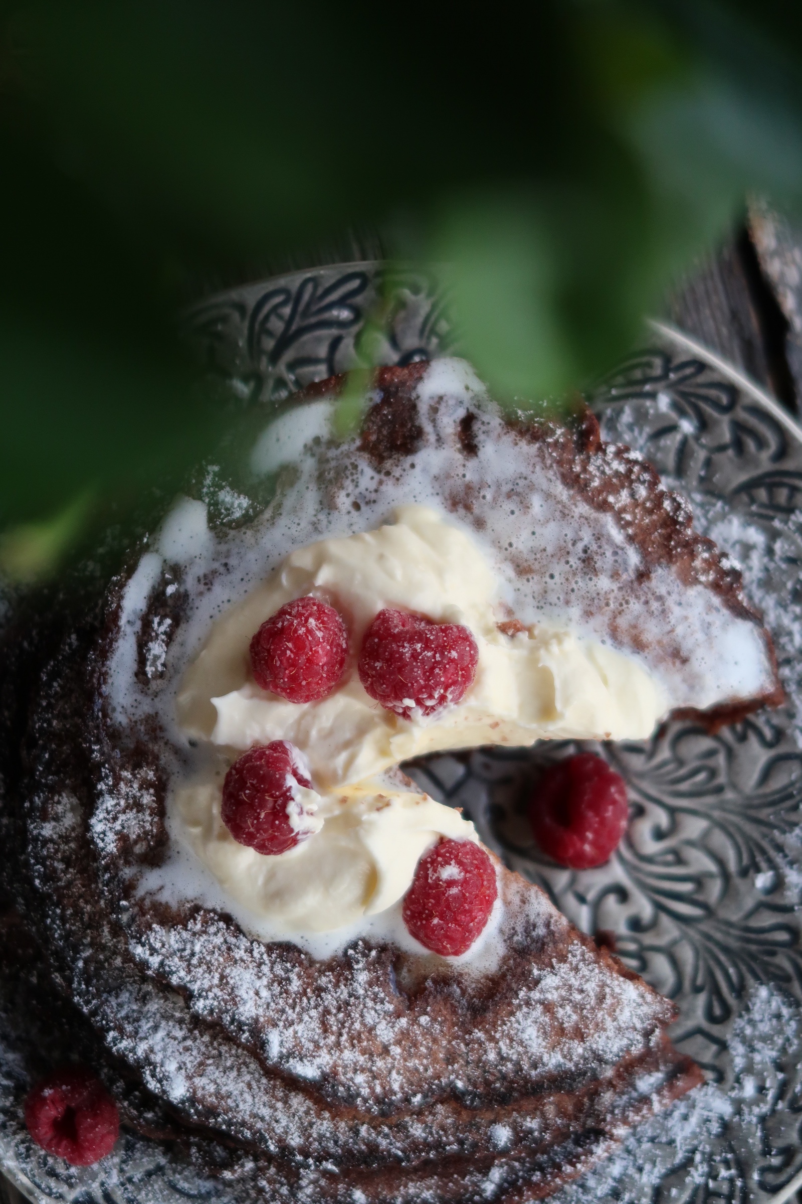 5) Stek på ganska så svag värme i rikligt med smör, stek ca 1-2 minuter på varje sida. Servera med grädde, hallon och florsocker.