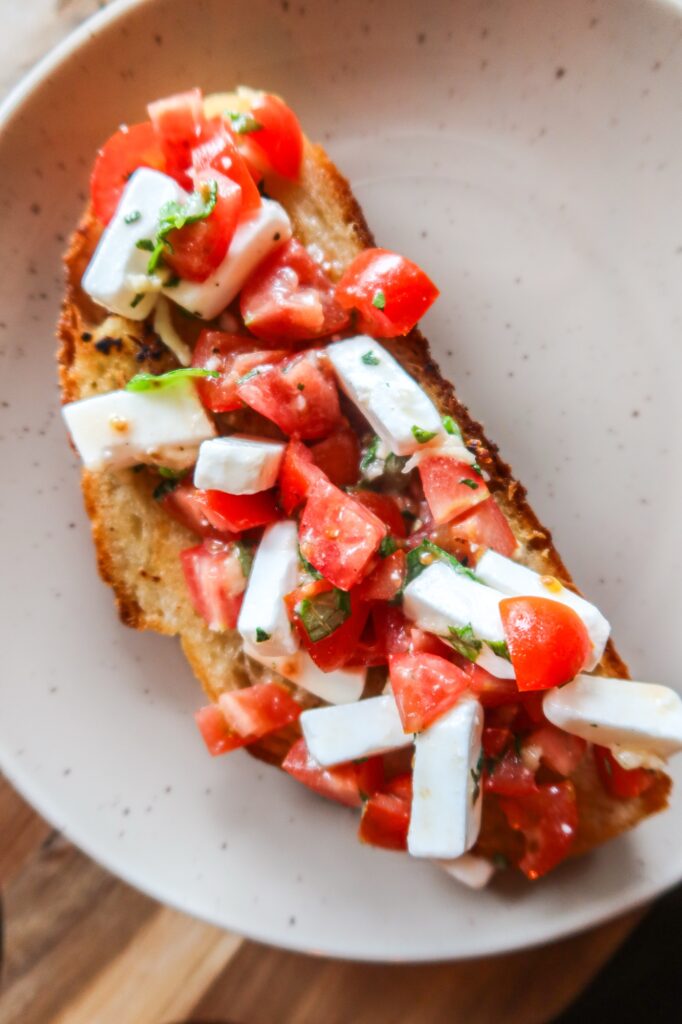 Tips! Ät bruschettan direkt så att brödet behåller sin härliga krispighet.