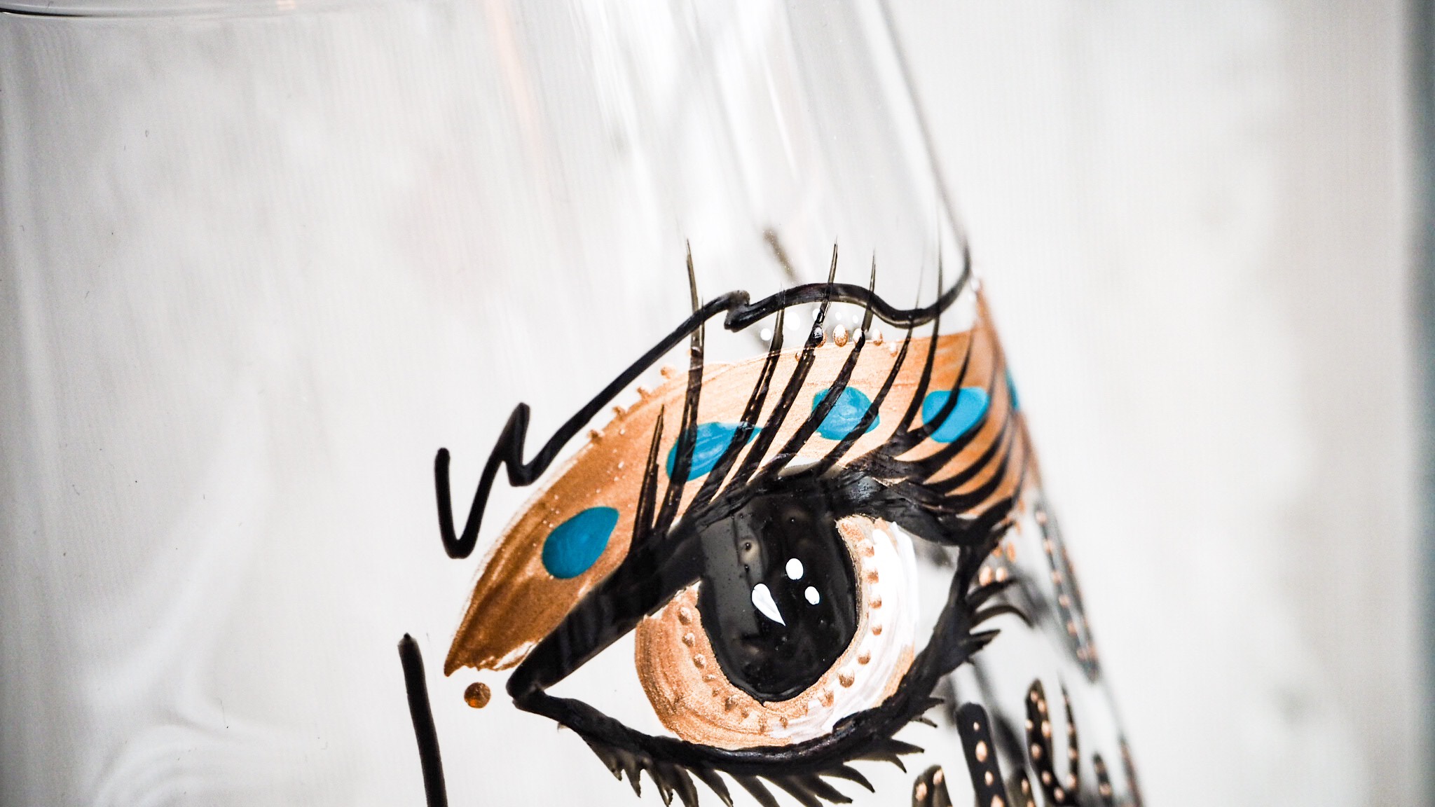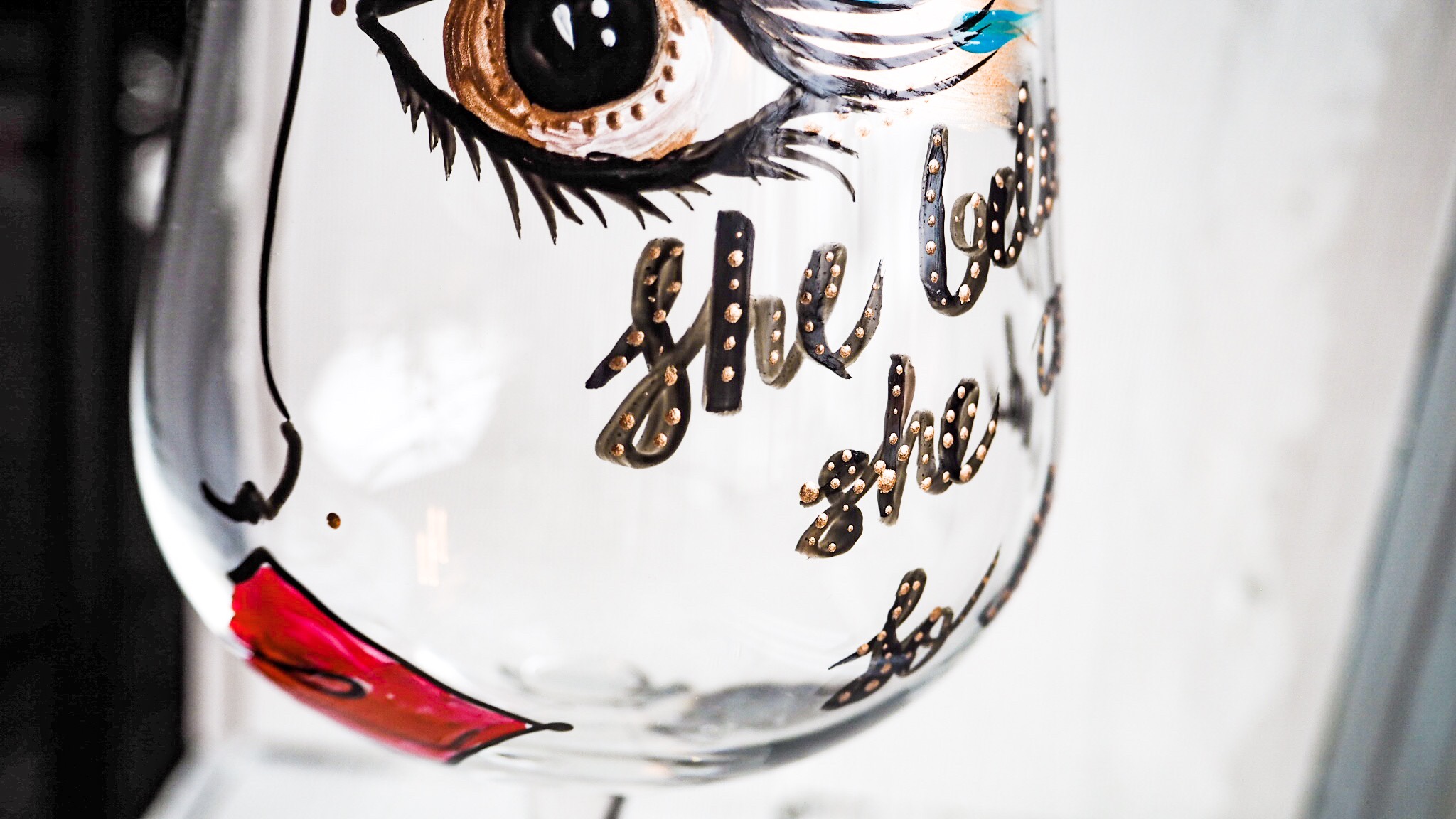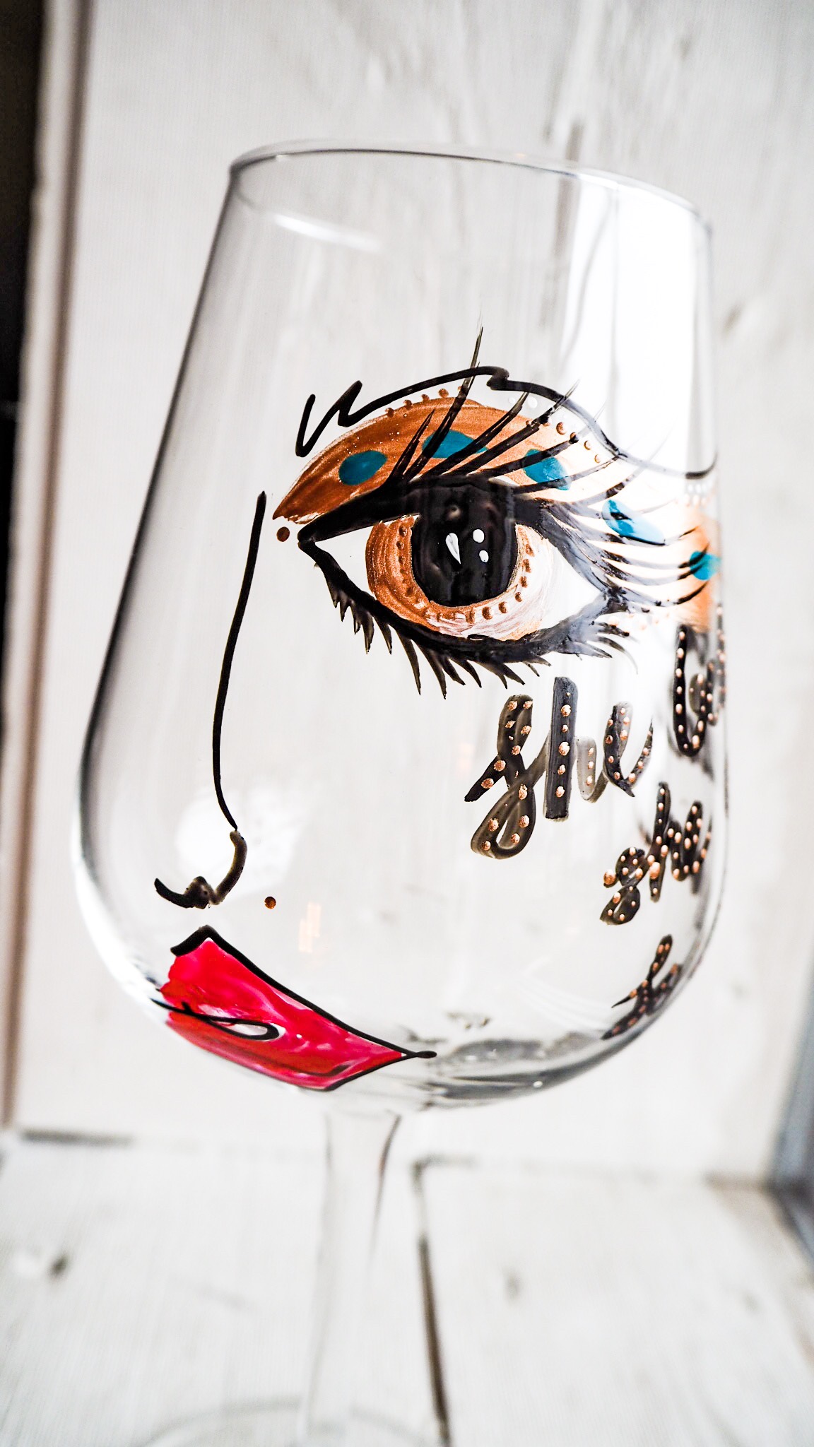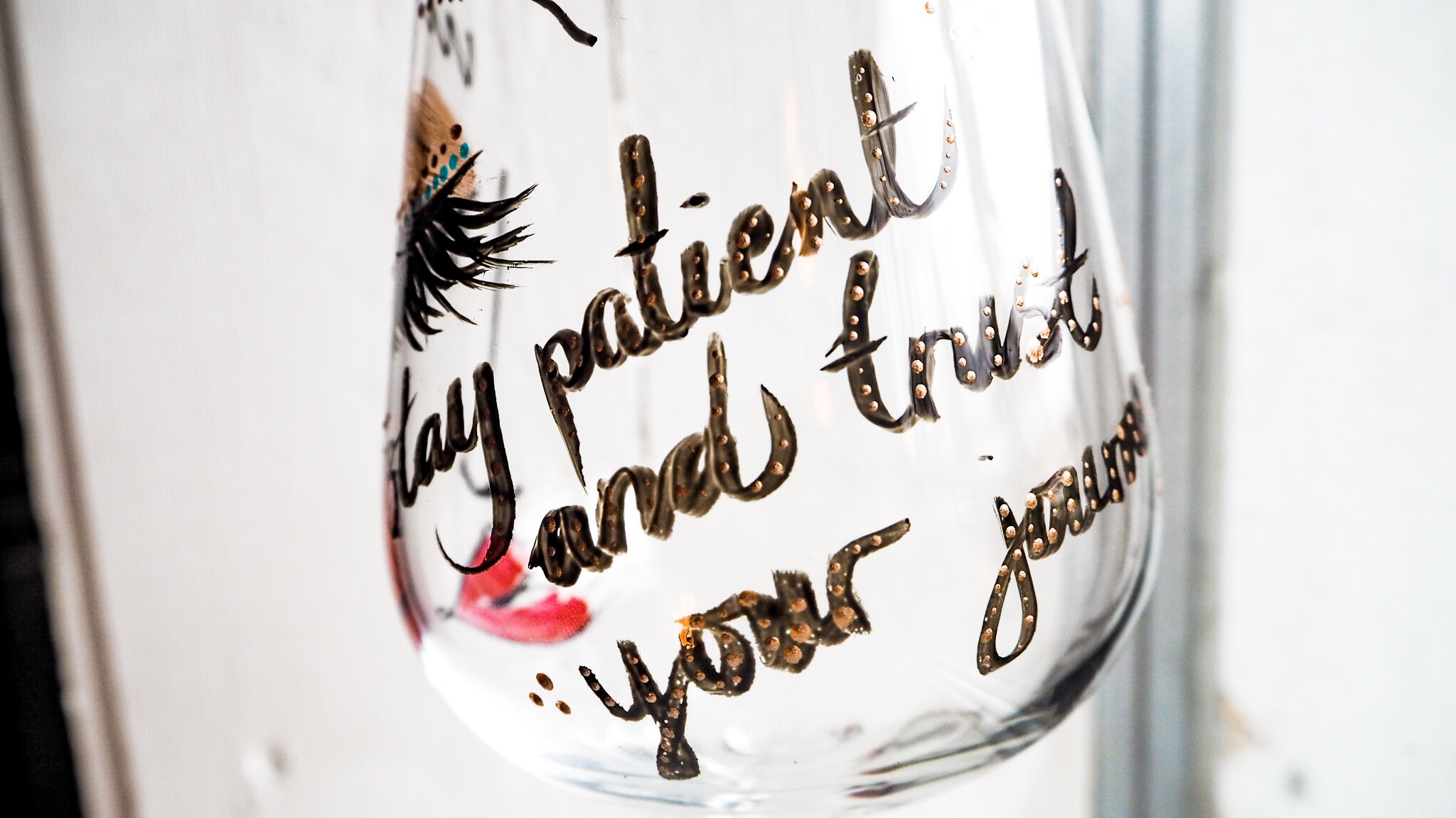 Idag har jag målat lite glas igen. Nu målar jag lite större rödvinsglas. Finns lite mer utrymme att måla på dom så jag la även till lite text i form av olika budskap.