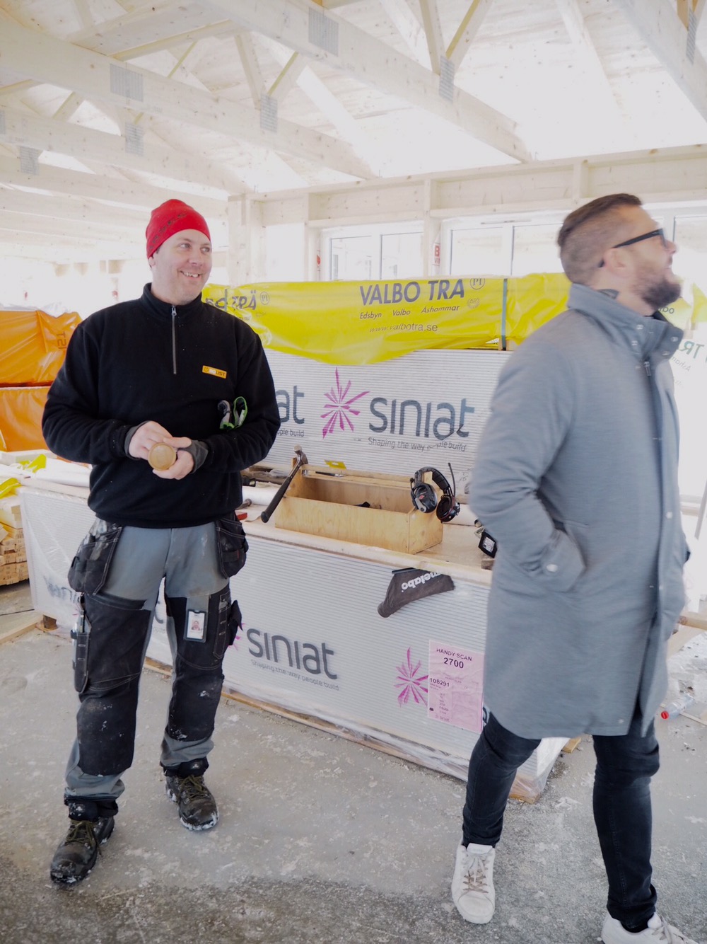 Hörni! Igår var vi förbi exet Magnus bygge. Kolla! Det börjar hända grejer minsann! Nu är fönstren i och dörren monterades igår. Taket är på och nästa vecka börjar nog panelen utanpå att sättas. Det är också då allt inuti ska börja ta form.