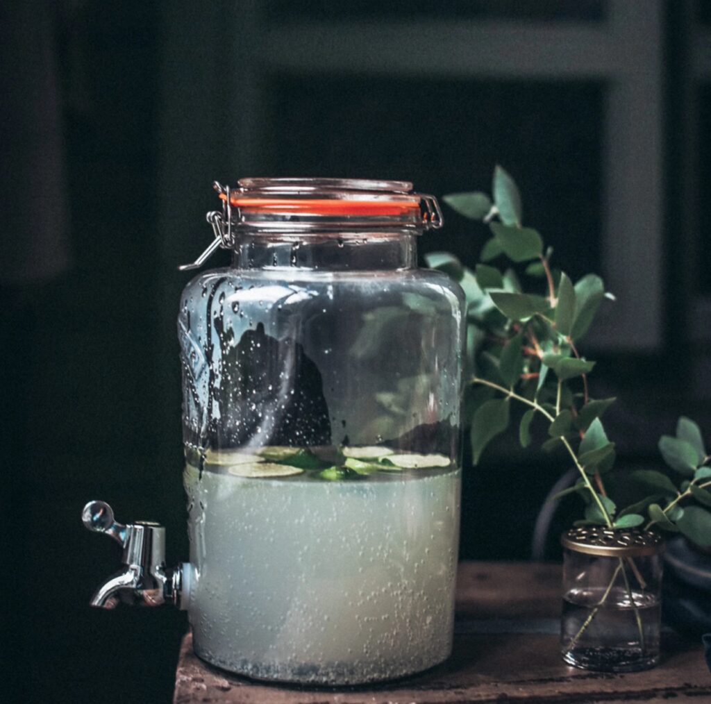En sån här glasbehållare kan man ha mycket nytta av, hälla upp saft eller lemonad i. Iskallt vatten med is. Ja men det finns många användningsområden. Riktigt trevligt att ha!