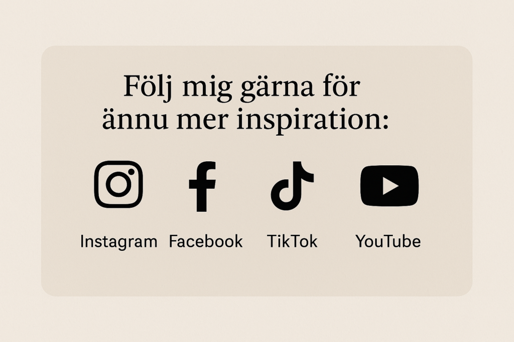 Följ gärna min Instagram (<länk till Instagramsidan) också, är aktiv dagligen i storys. Där hittar du även andra roliga tips och uppdateringar.