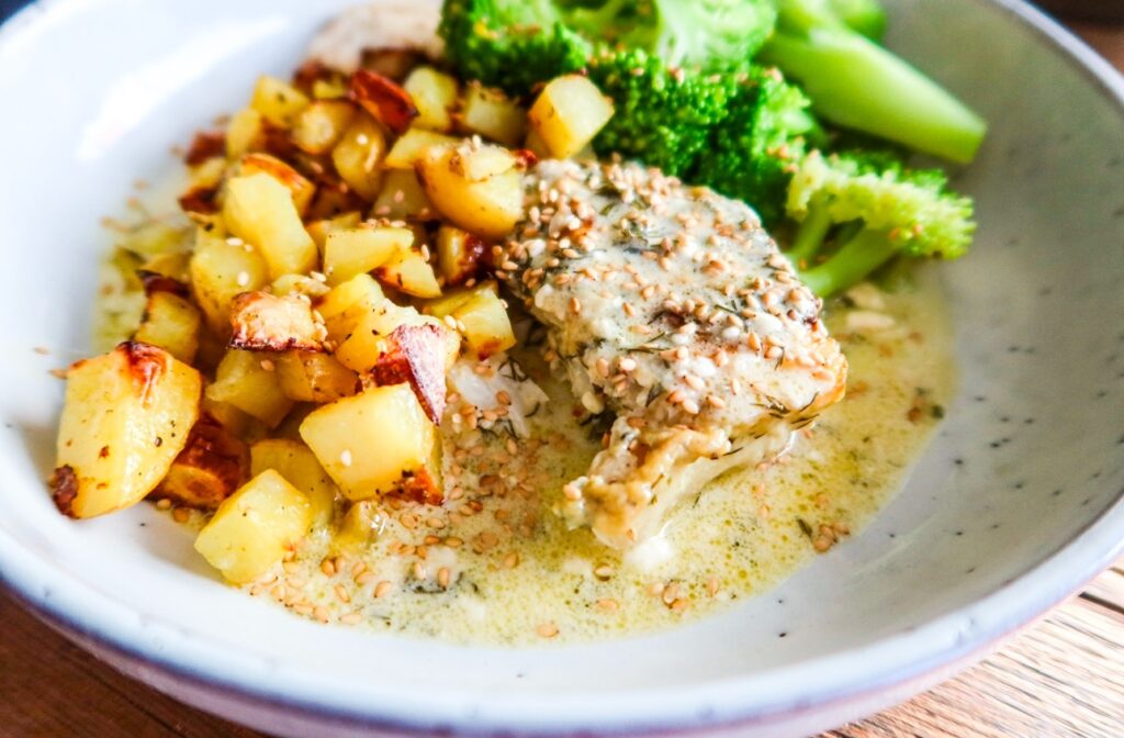 Mums! I vår familj försöker vi äta fisk minst en gång i veckan. Tur är väl att vi alla gillar fisk. Torsk är en av favoriterna. Den här citrontorsken var så himla god. Fräsch och krämig på samma gång. Älskade såsen, den var verkligen så god till citrontorsken. Dill är också en favorit när det kommer till örter. Sätter så god smak och passar verkligen 100% till denna citrontorsk. Du måste prova!