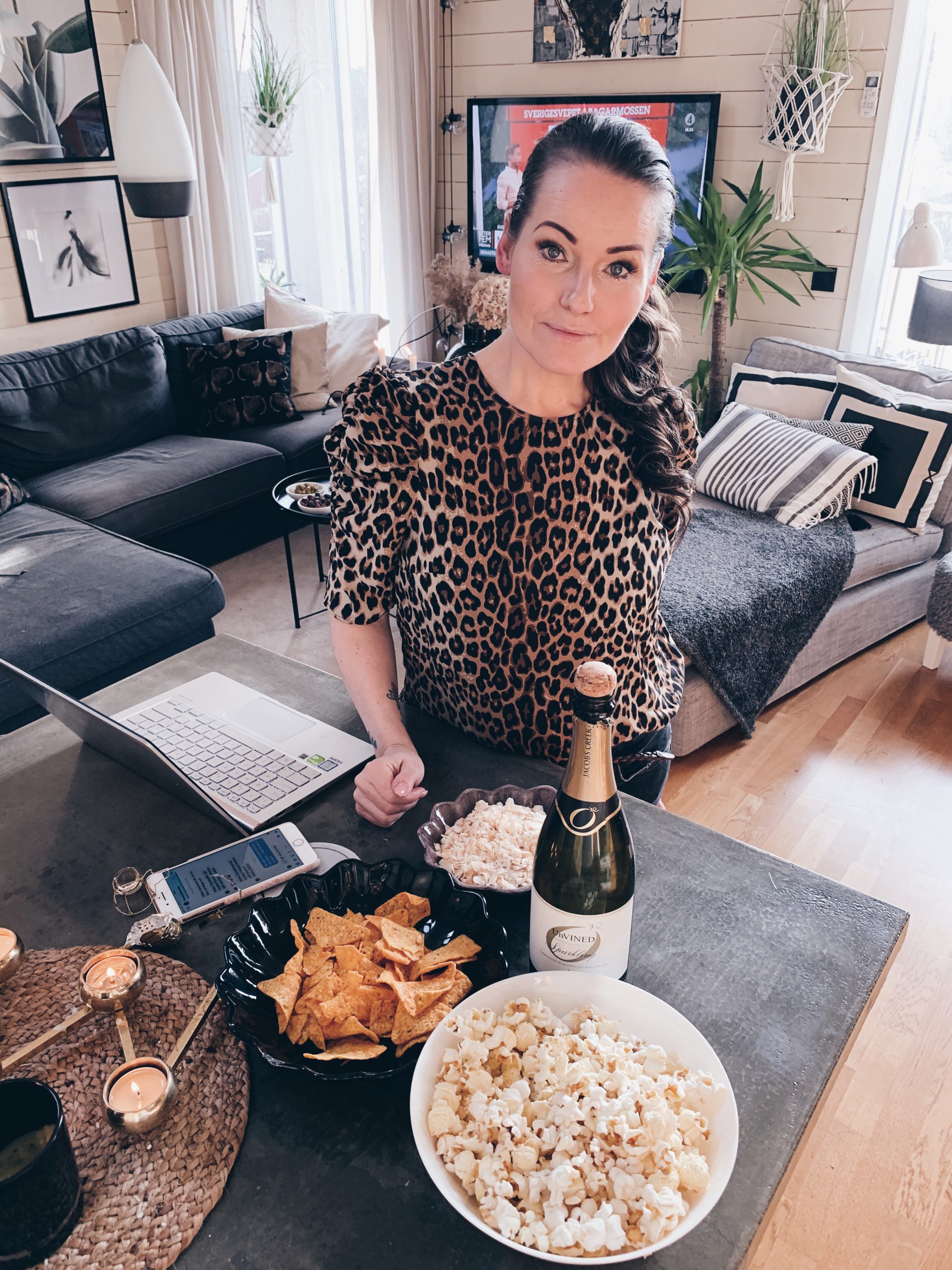 Jag duschade, tvättade håret och sminkade mig kvällen till ära. ✨💫 Det var hur härligt som helst faktiskt. Vi dukade upp lite goda snacks och korkade en alkoholfri bubbel som vi hade haft i frysen en stund.