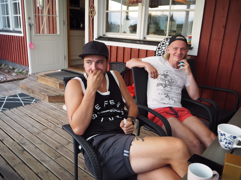 Så glad att Thedde och kompis Willy också dök upp. Thedde fick en liten sommarpresent av sin mamma. Båda stora barnen fick de. Det blev en smaskig parfym till båda. De åker till till Rhodos om bars några dagar. Thedde först en vecka, sen Elliot veckan efter. Kommer vara två oroligs veckor….fyyyyi! Men nu vet jag att dom inte kommer lukta skit i alla fall.