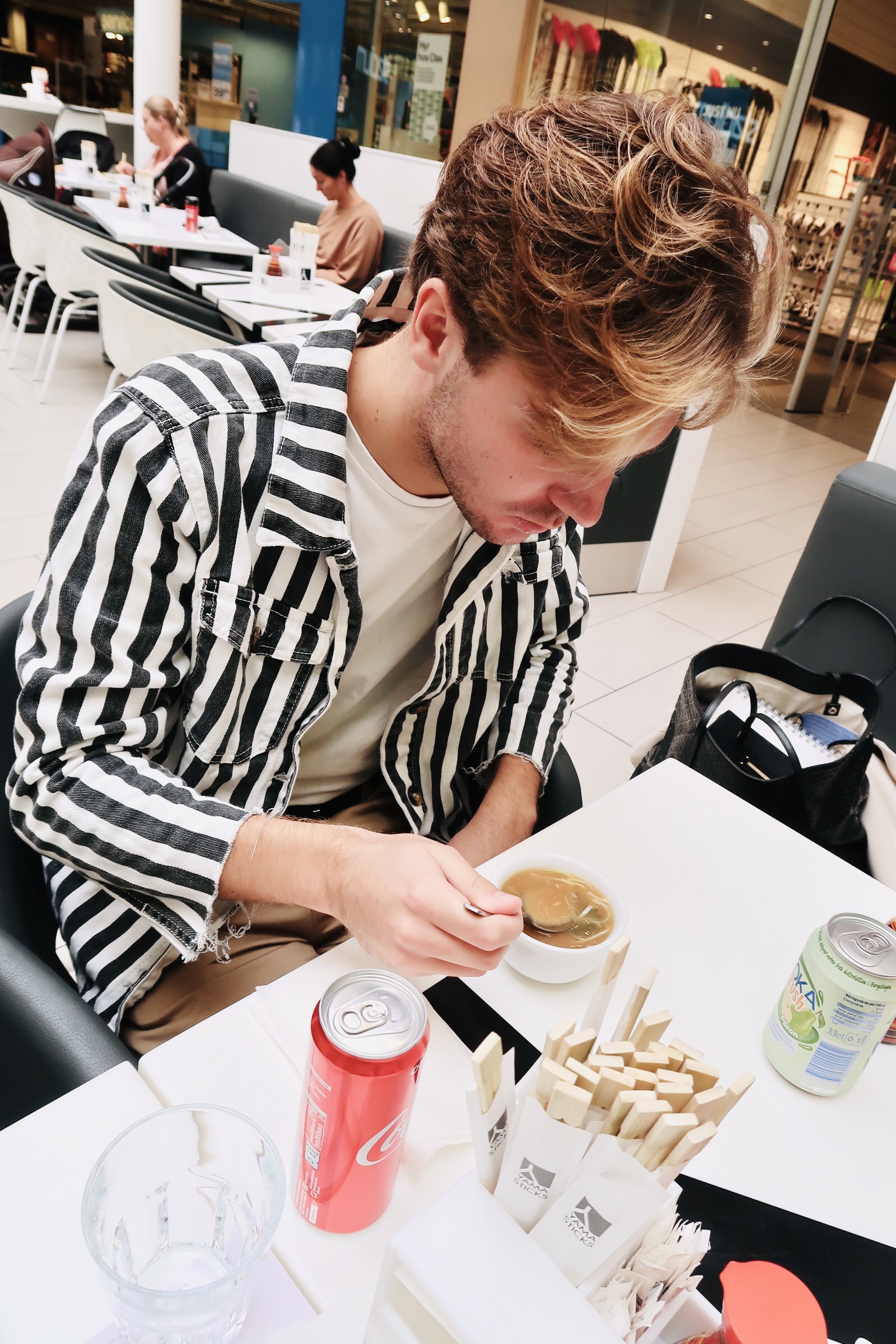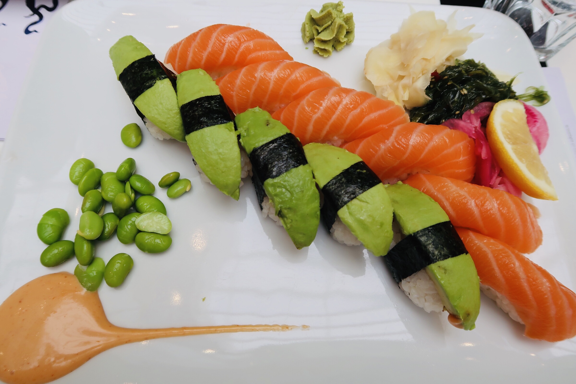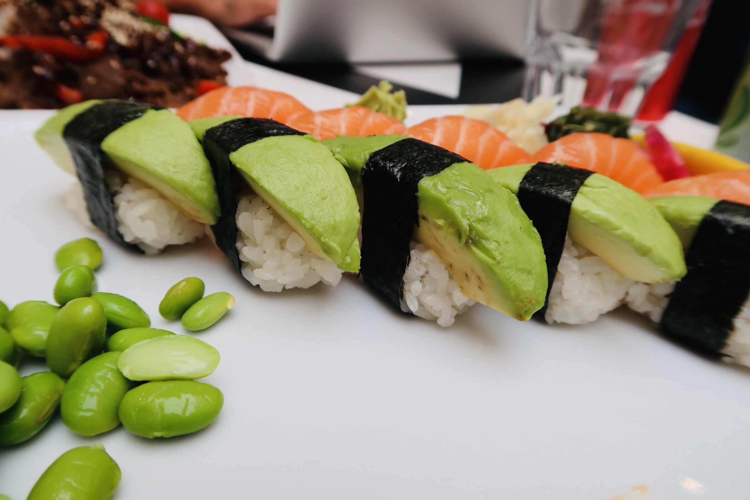 Vi båda älskar sushi så det var typ givet att det fick bli det. Jag äter bara lax och avocado, Elliot är en sån som äter precis allt när det kommer till sushiå. Han är helt orädd för allt och äter allt han blir bjuden på typ, och han älskar god mat. Som liten var han dock den kräsnaste lilla ungen som fanns. Han åt typ inte. Jag brukade säga att han levde på ”luft och kärlek”. Ett under att han ens växte ibland? Man fick vara glad om han ens åt pannkakor. Jag minns att vi lagade det som han ville äta i flera år bara för att få i honom mat. Var det korv, ja då fick han korv. Var det pannkakor, ja då var det pannkakor. Det blev människa av honom ändå och idag är han en gourmand.