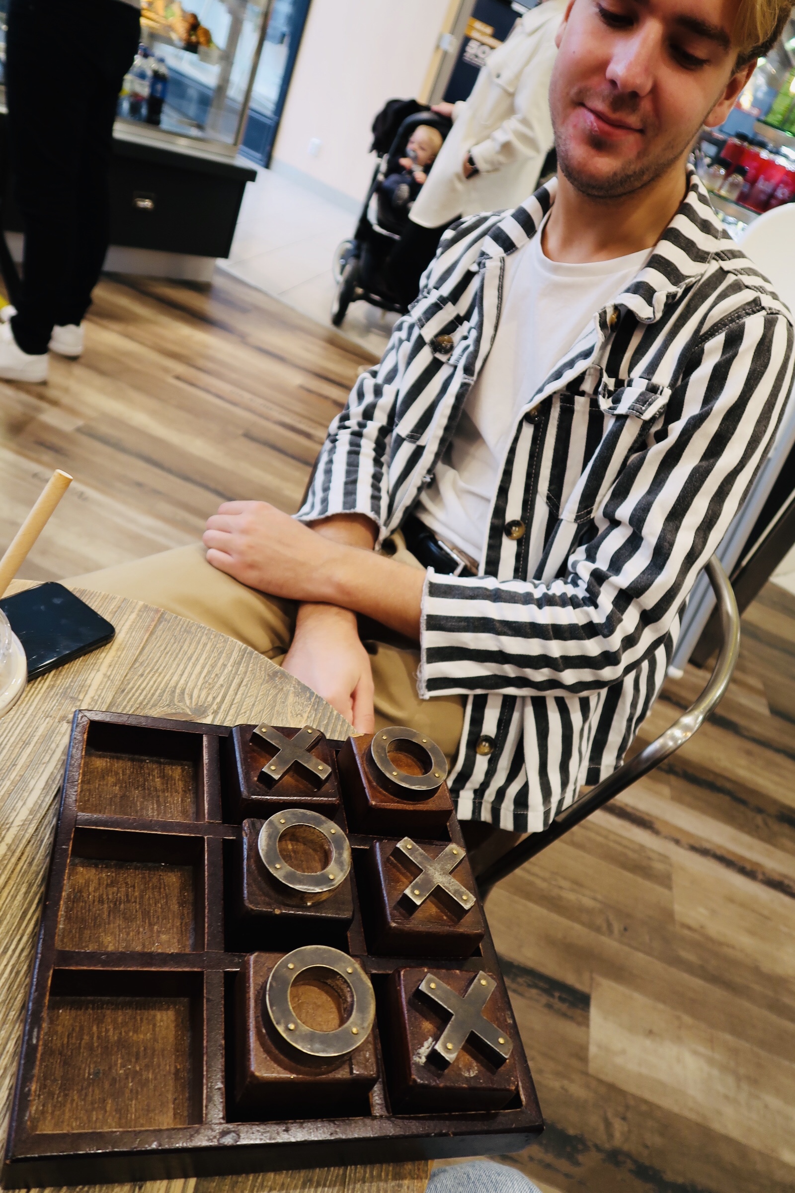 En kaffe och lite tre i rad på Espressohouse blev det också. 1-1 i matcher blev det, sen vågade han inte spela mot sin mamma mer. Haha….