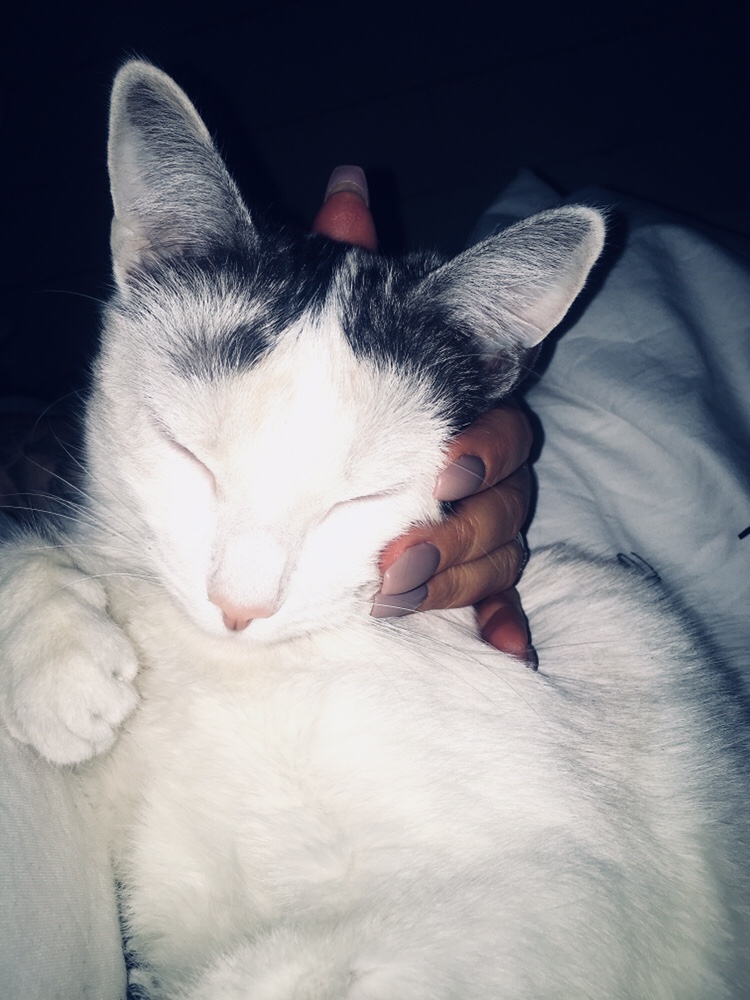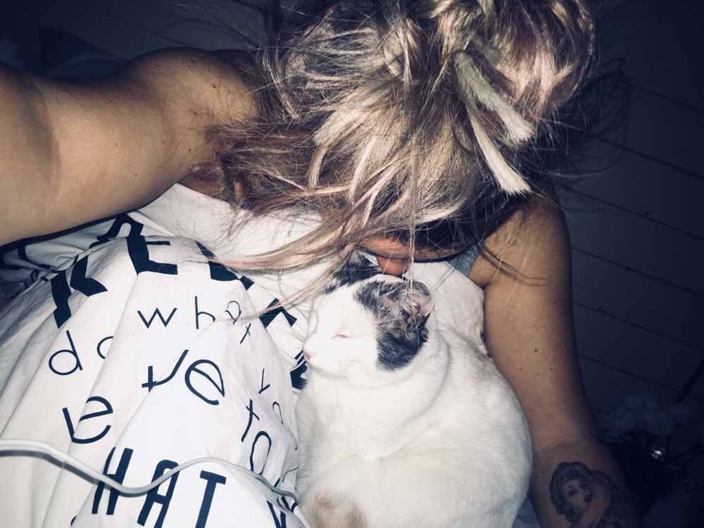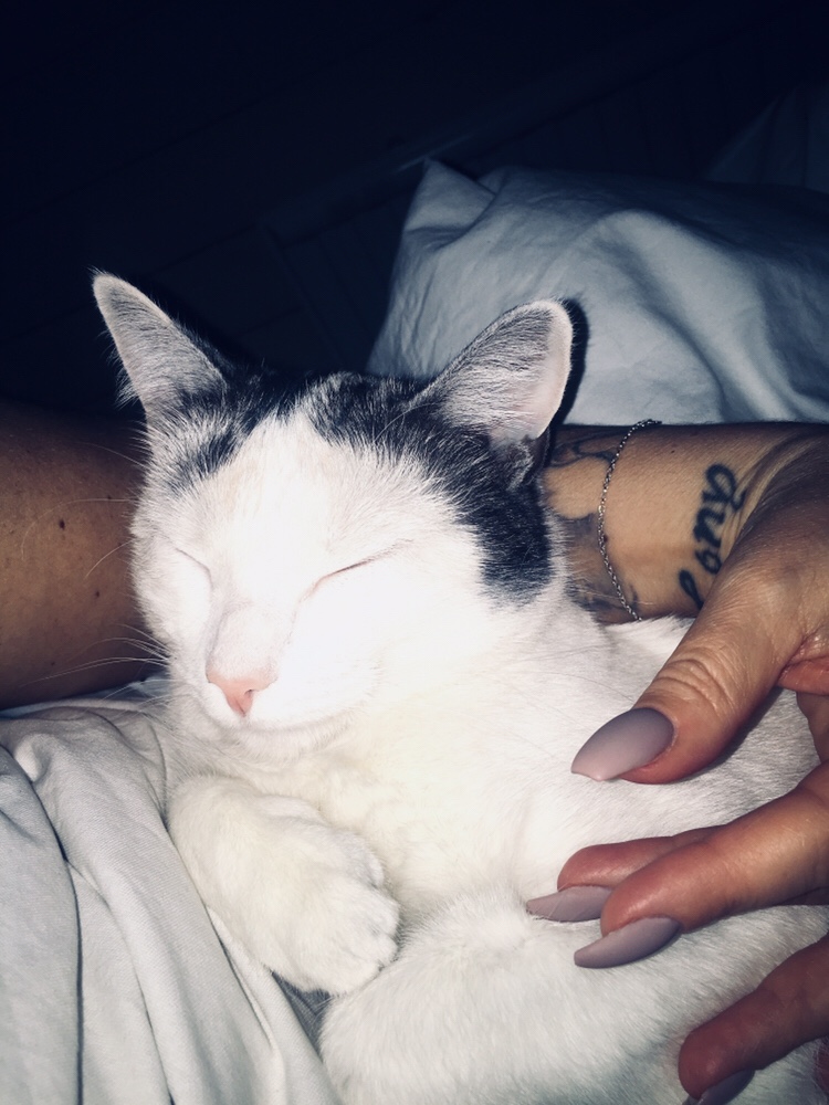 Lite morgongos med hårbollen. Hon är lite extra mysig på morgonen. I morse bet hon på min sladd till mina hörlurar. Hon älskar sladdar och det ser nästan ut som hon tandtrådar med dem. Haha…