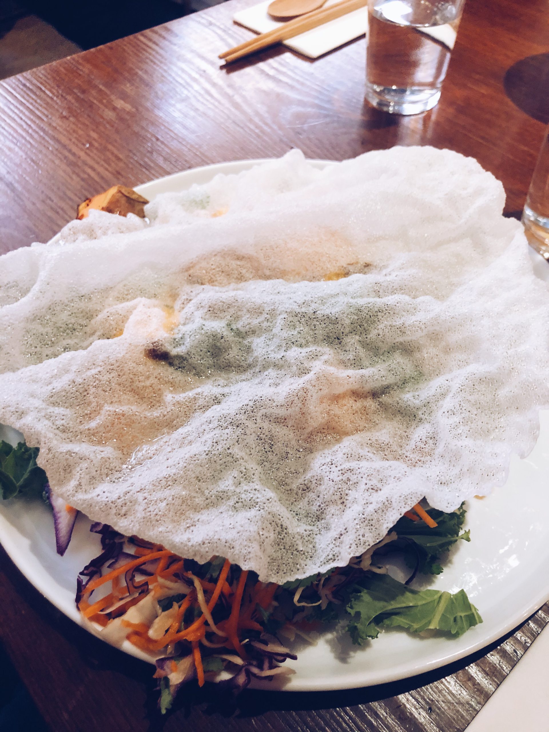 Vi käkade på en veganskt restaurang som heter Ling Long, ligger på Riddargatan. Såå gott om än lite starkt, jag klarar stark mat väldigt dåligt men jag tog bort lite av den starka dressingen på min annars supergoda sötpotatissallad. Sussi åt linsgryta och tyckte den var jättegod också. Min sallad låg under ett friterat rispapper så den såg lite kul ut när den kom in.