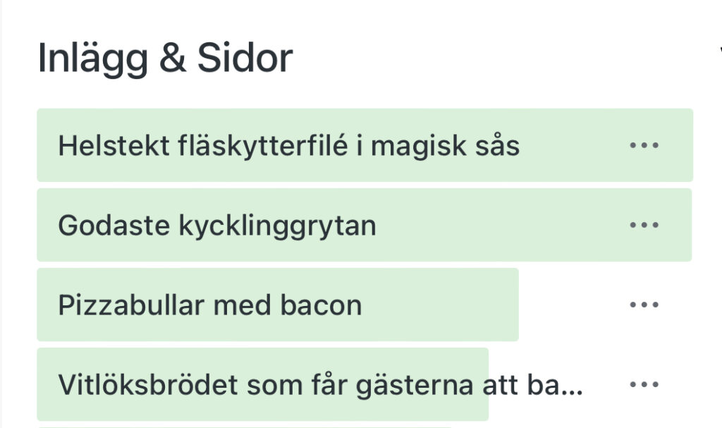 Såhär ser topplistan för senaste veckan ut. Det var en tajt toppstrid där 1:an bara vann med ynka 50 fler besök. Så roligt det är att följa vilka recept som är mest populära vecka för vecka.