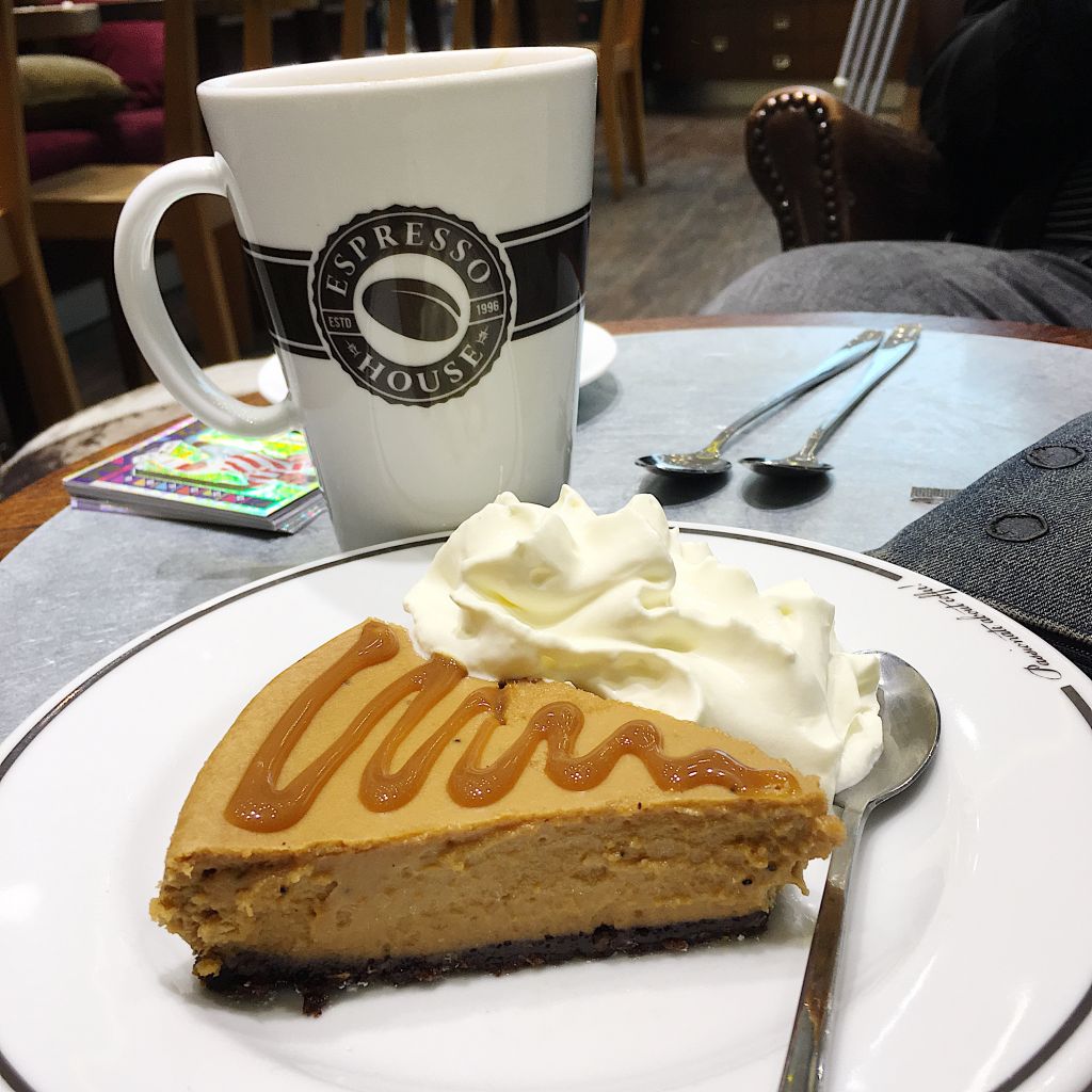 En liten fika blev det också. Vi festade till det med en Caramel cheesecake som är så sjuuuuuuuuukt jäkla god. Vi delade på den för att inte det där jäkal samvetet skulle börja picka igen.