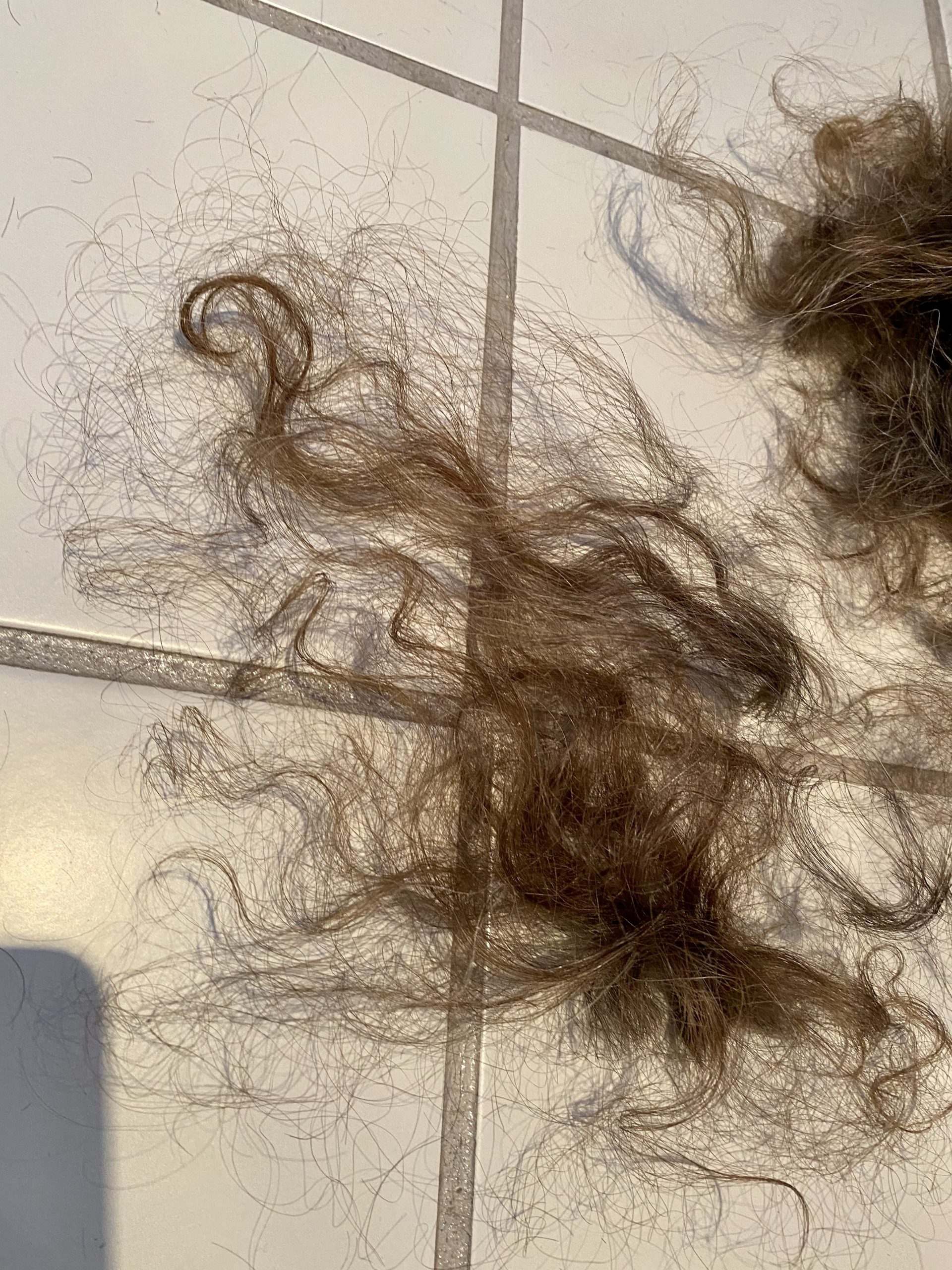 Igår morse hände det här! Haha…. det är Tonys lockiga burr som ligger där. Han råkade raka sig lite fel igår så det hela slutade med att Milo rakade av honom allt. Ni som följer mig på Instagram kunde följa allt på story. 😅 (Här hittar ni min Instagram).
