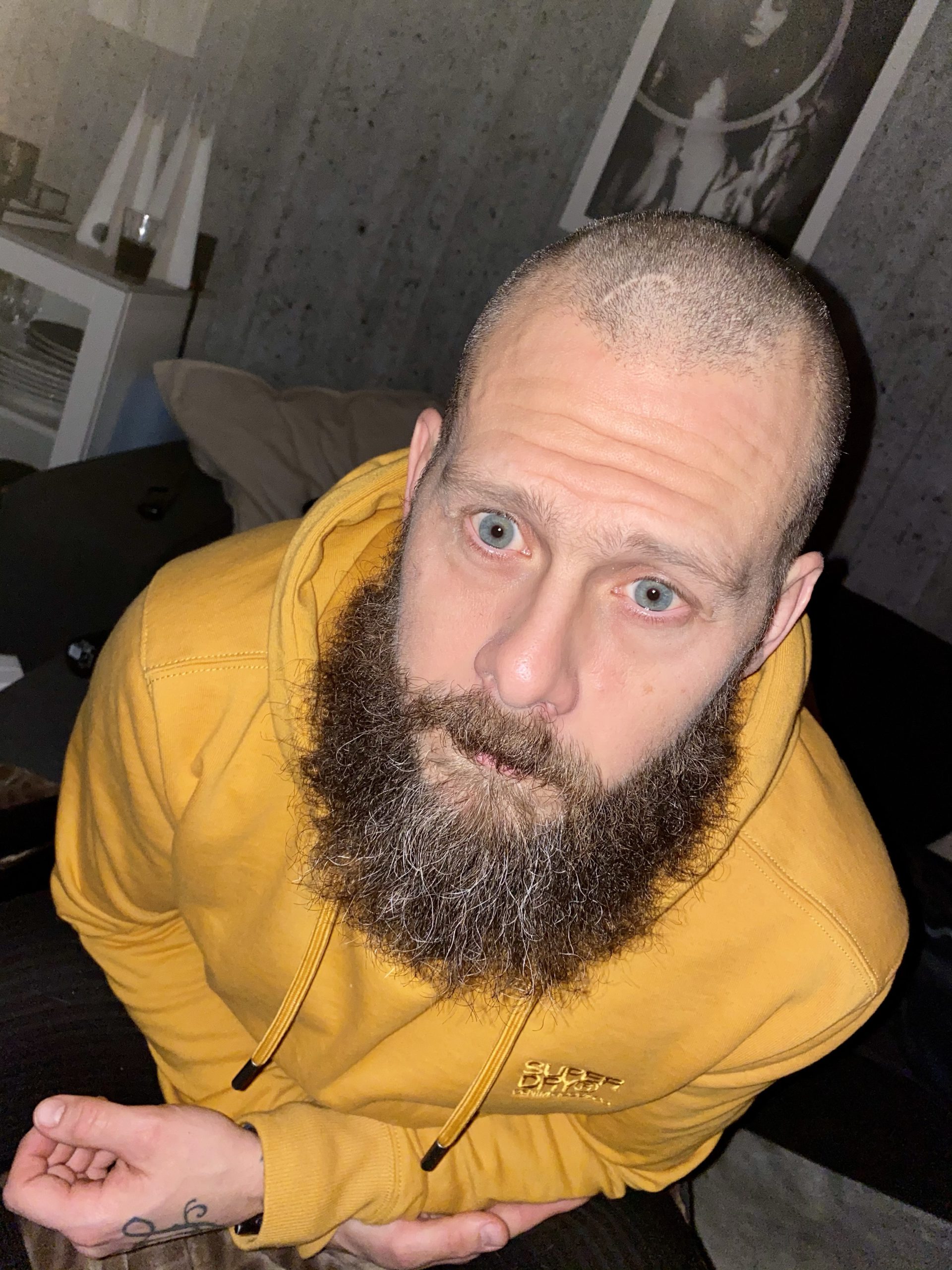En ny man i vår soffa. Ärret uppe på huvudet fick han när han gjorde lumpen som brandman. Apropå skägget….. i ett teamsmöte i förra veckan var det en som frågade om han hade yoghurt i skägget? Hahaha…. nääääää det är gammeln som kommit och tagit honom. 😂 Jag är osunt glad över hans ålderstecken ska ni veta, haha….-antar att det är baksidan av att ha åldersskillnad. Tony är ju 8 år yngre än mig för er som inte vet det. Så varje ålderstecken som jag ser på honom blir jag lite glad i magen av. Män åldras ju assnyggt dessutom! Han blir bara finare och finare tycker jag, mer och mer manlig liksom. Sen behöver jag inte känna mig ensam med långa skäggstrån på hakan och rynkig panna. Haha…