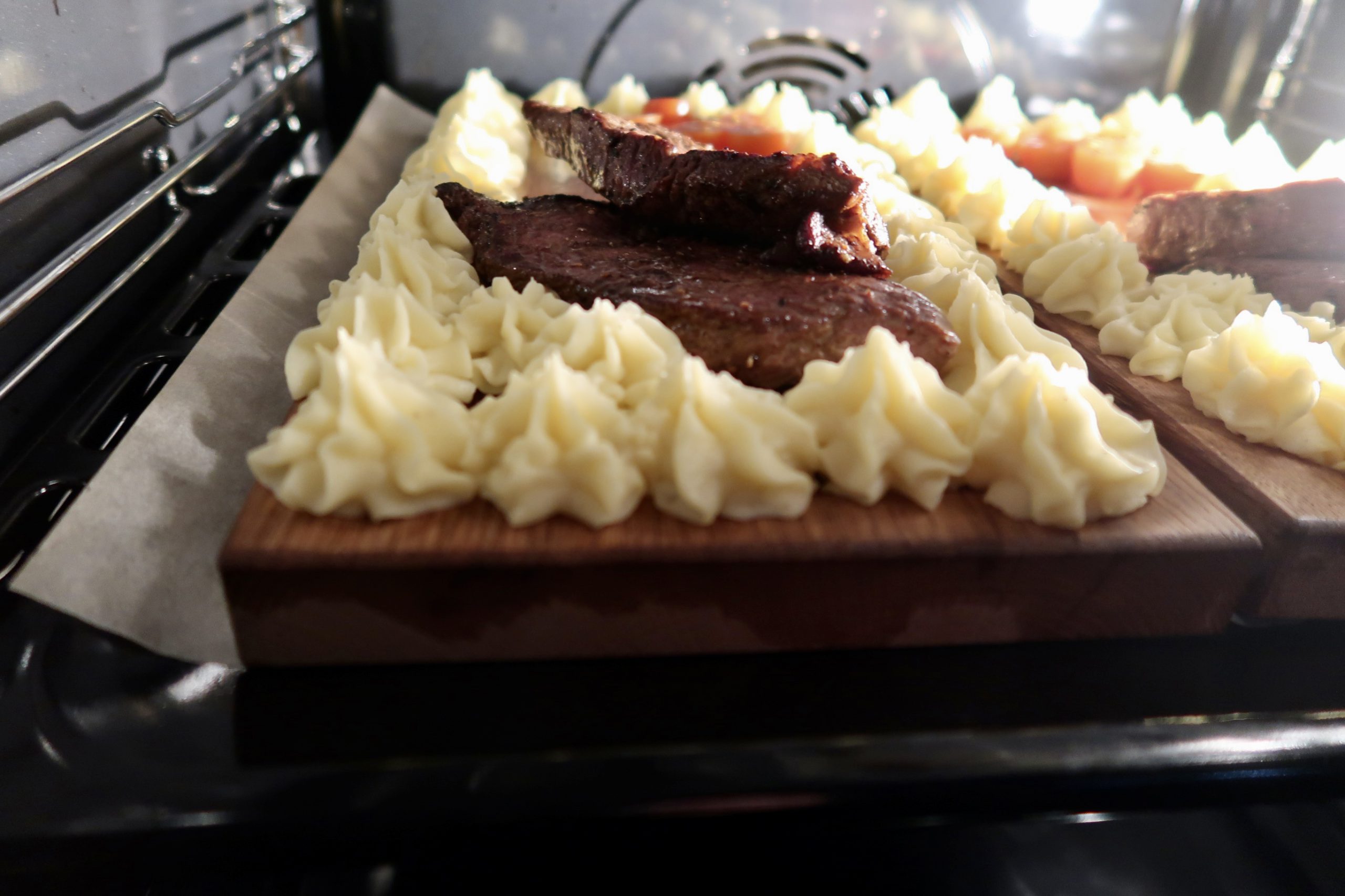 Den här goda middagen gjorde vi igår innan mello började. Plankstek. Mums! Jag som aldrig äter kött tyckte rostbiffen blev riktigt bra och var riktigt god. Recept får du senare.
