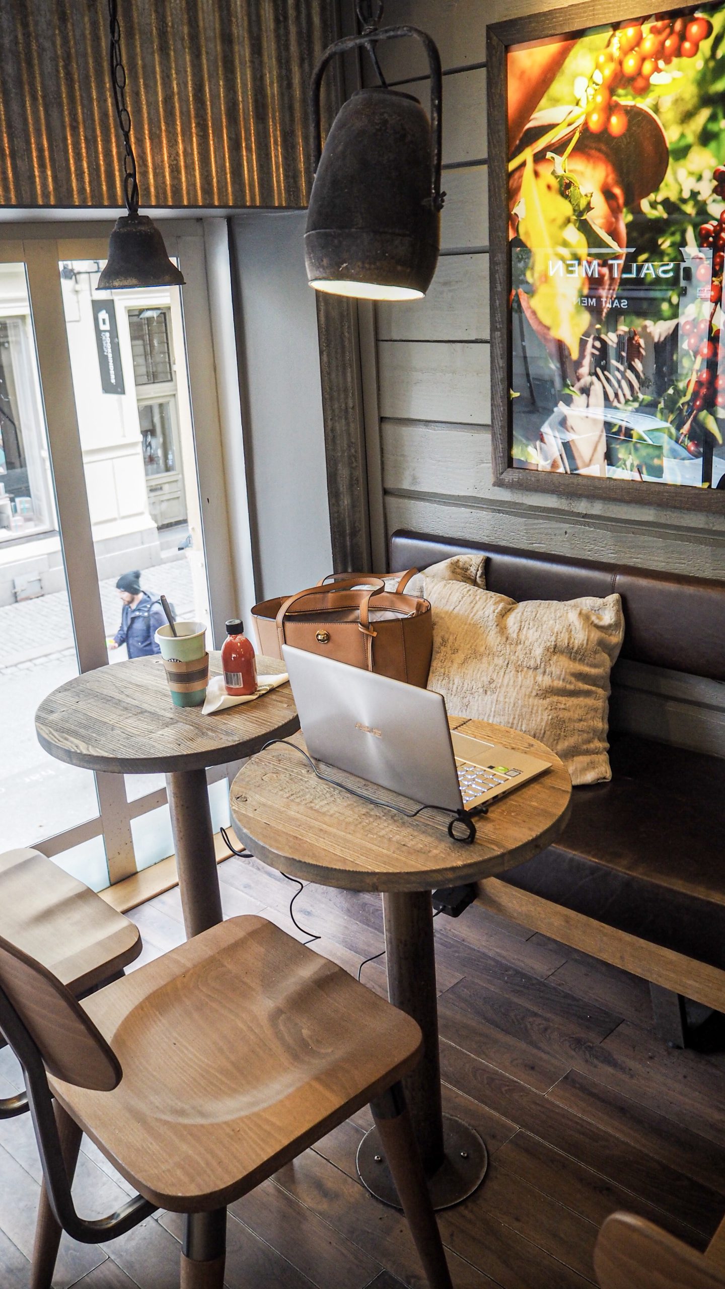 Här hade jag min arbetsplats idag. En liten Espressohouse på Drottninggatan. Så mysigt där. Väldigt lite folk på övervåningen också. Tony var på möten i närheten så det passade perfekt.