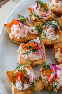 Ja det är ju olika hur man gör. Visst finns det traditionella med sill, färskpotatis, prinskorv och köttbullar. Sedan kan man festa till det med all världens härligheter. Jag bjuder på en hel del här nedan.