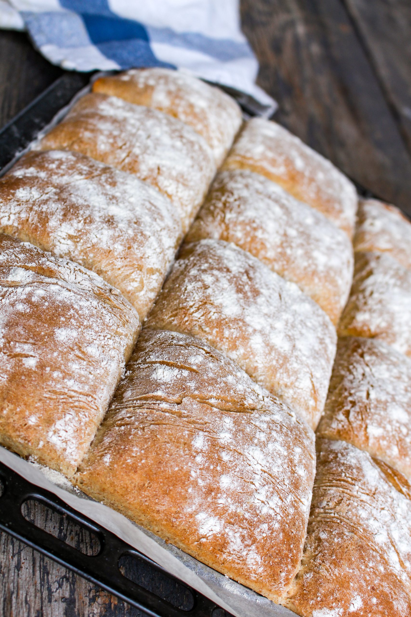 Oj oj vad jag hattat runt med sömnen inatt. Dock så somnade jag om på småtimmarna och sov ända till halv 8. Hela dagen har ju hunnit gå nästan. Haha… Nu ska du få ett FANTATISKT recept på långpannebröd gjord på dinkelmjöl utav mig. Detta bröd är bakat på både vanligt siktat dinkelmjöl, fullkornsdinkel och lite vetemjöl. Dinkelmjöl har lägre GI än vanligt vetemjöl.