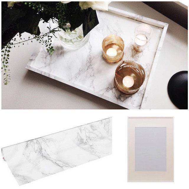 Här är en stor som jag gjorde av en gammal Ribba ram vi hade hemma. Måste säga att det blev väldigt bra och inte många kunde se att det inte var en äkta marmorbricka.