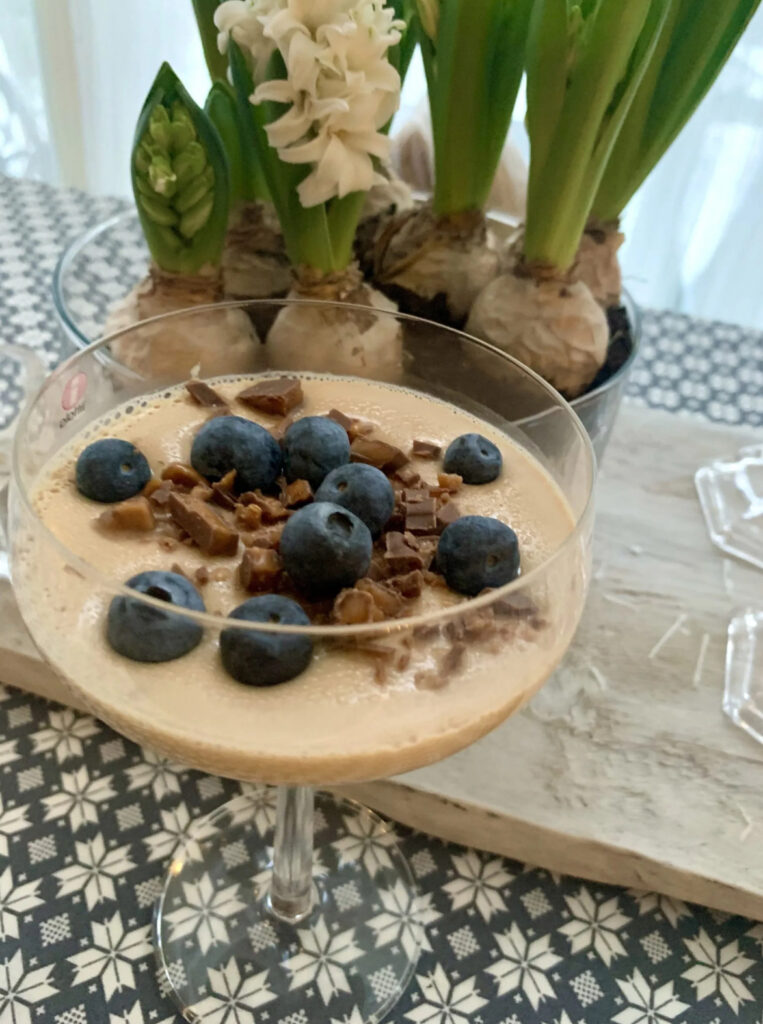 Vit Chokladmousse med blåbärsswirl (<klicka för recept)