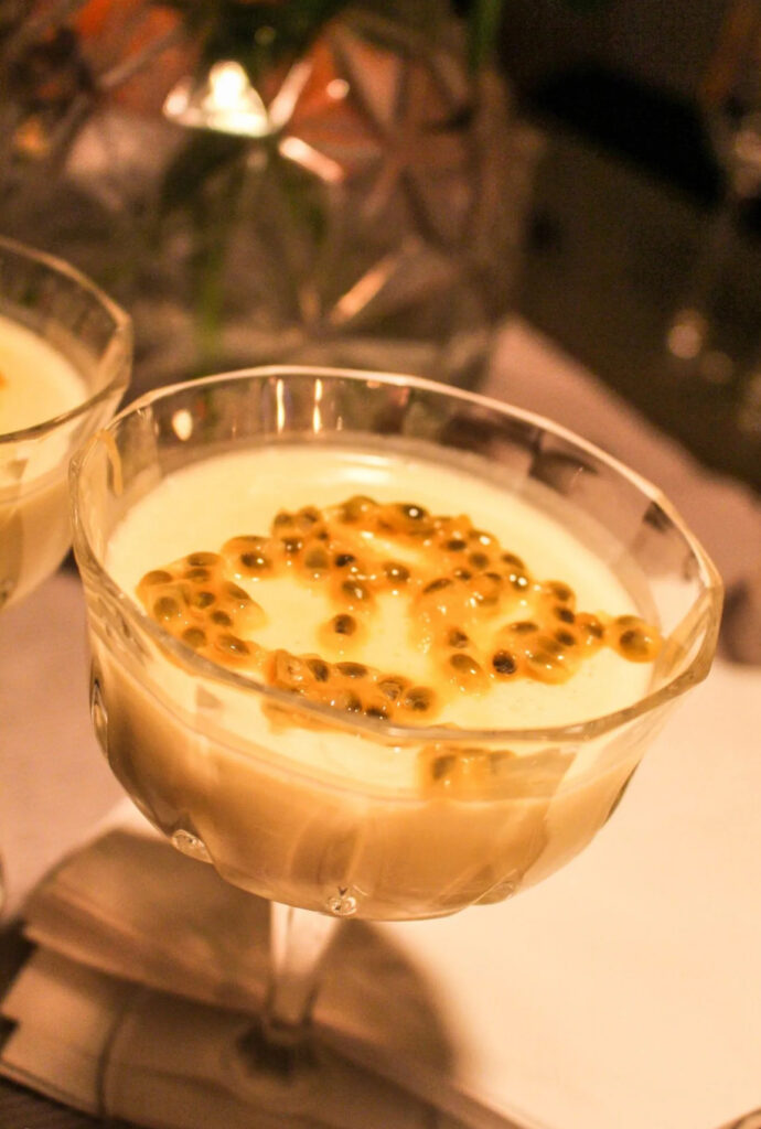 Vit chokladpannacotta med passionsfrukt (<klicka för recept)