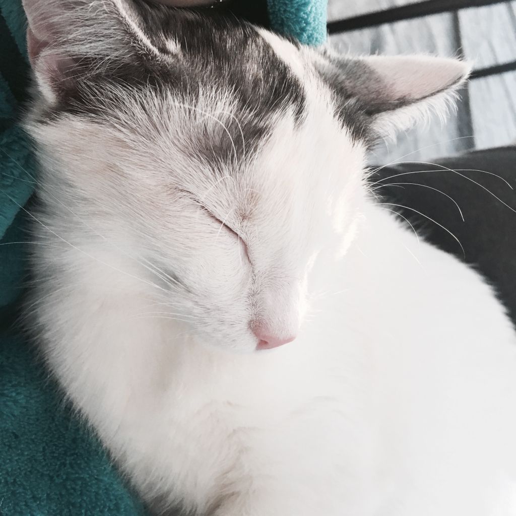 Hon ligger just i detta nu och spinner på mitt bröst. ❤️