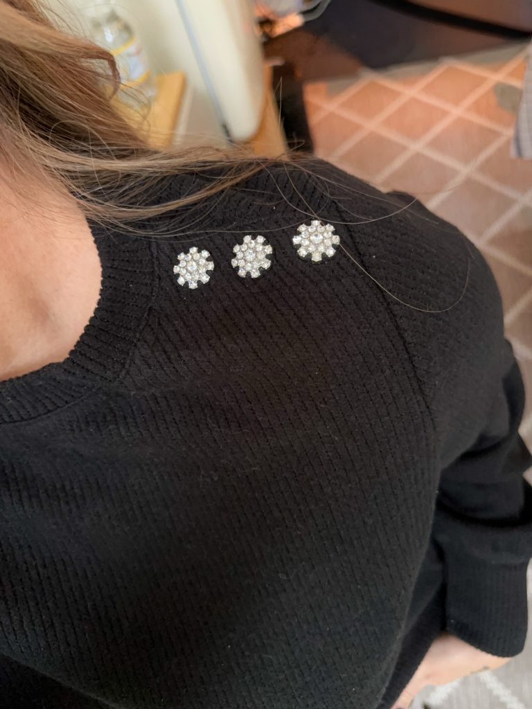 Älskar tröjan med de fina strassdetaljerna på axlarna. Blir liksom en festligare tröja av en vanlig skön tröja. Älskar sånt! Den finns i massor av färger och just nu REA!
