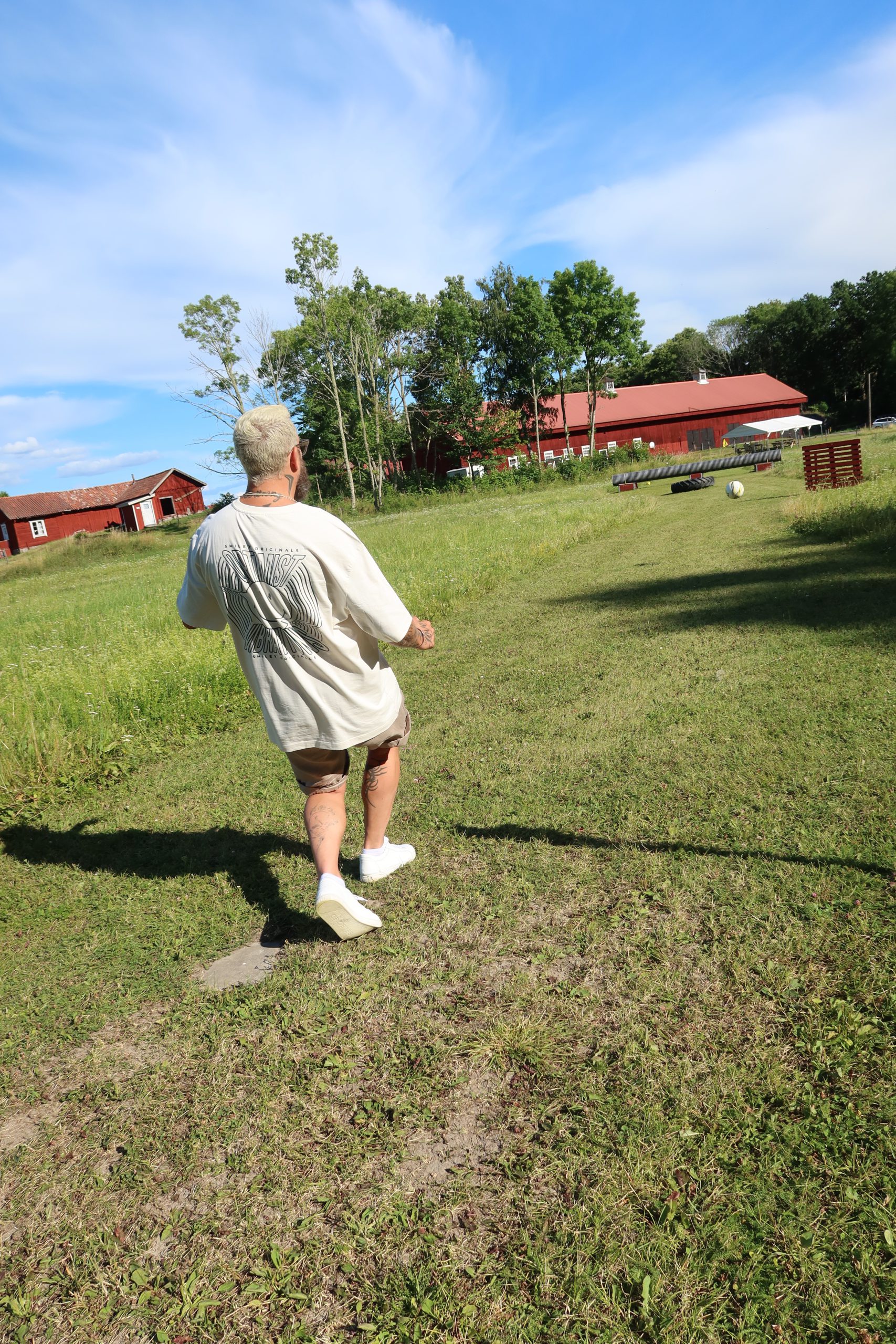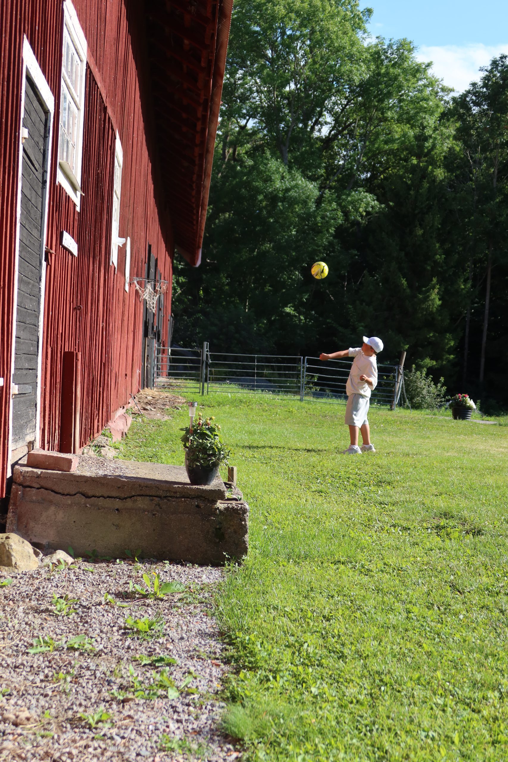 Efteråt så satte vi oss utanför den stora ladan. Milo spelade lite basket och sen satt vi länge och tittade på svalorna som flög ut och in till alla bon de hade byggt under ladugårdstaket. Så otroligt rogivande och mysigt och sitta där.