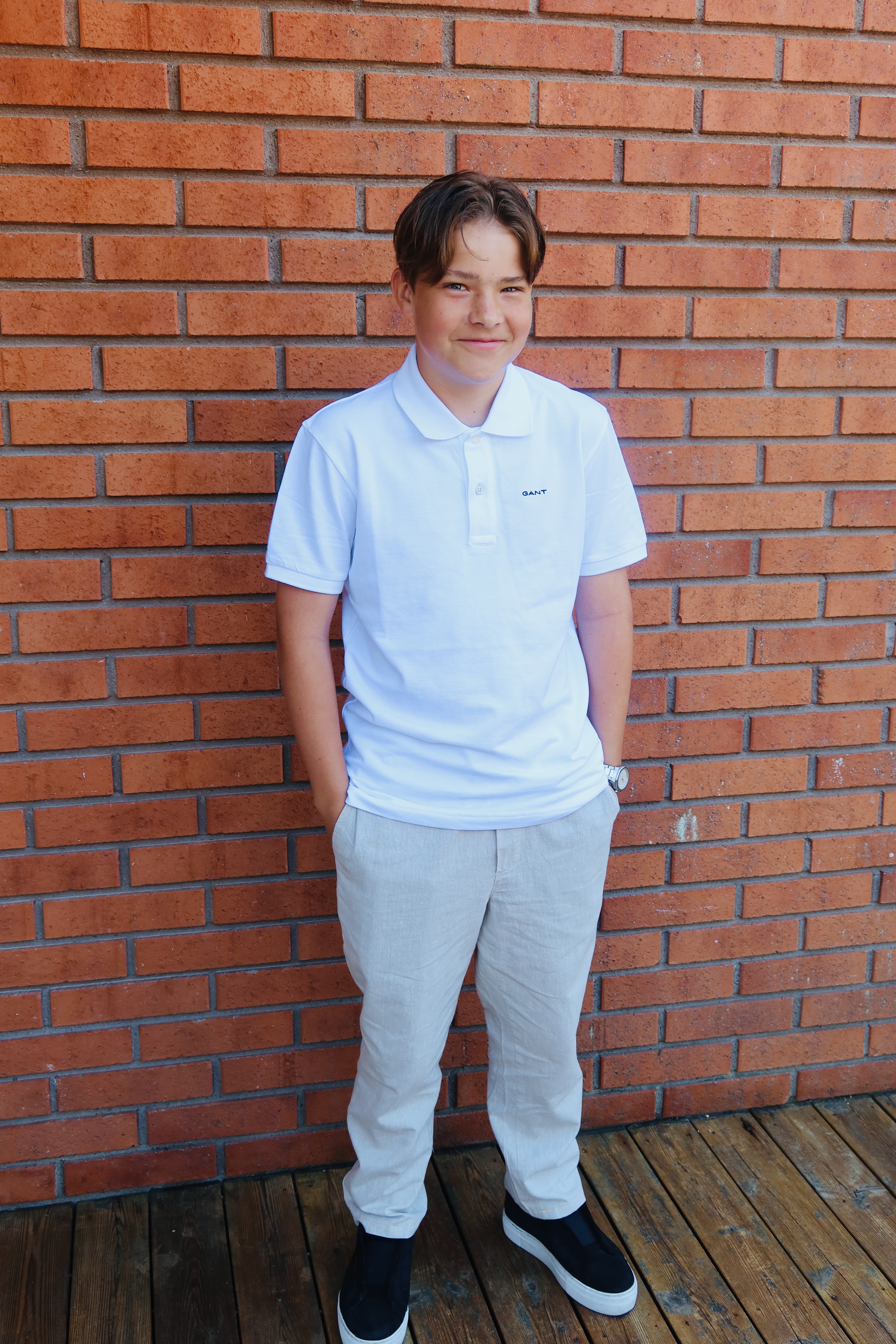 Han var så fin! Samtidigt slöt fina kompis Olle upp också. De går till skolan tillsammans varendaste dag, precis som i Fredags. Sista skoldagen för 8:an. Fasen, man blir ju blödig för mindre.