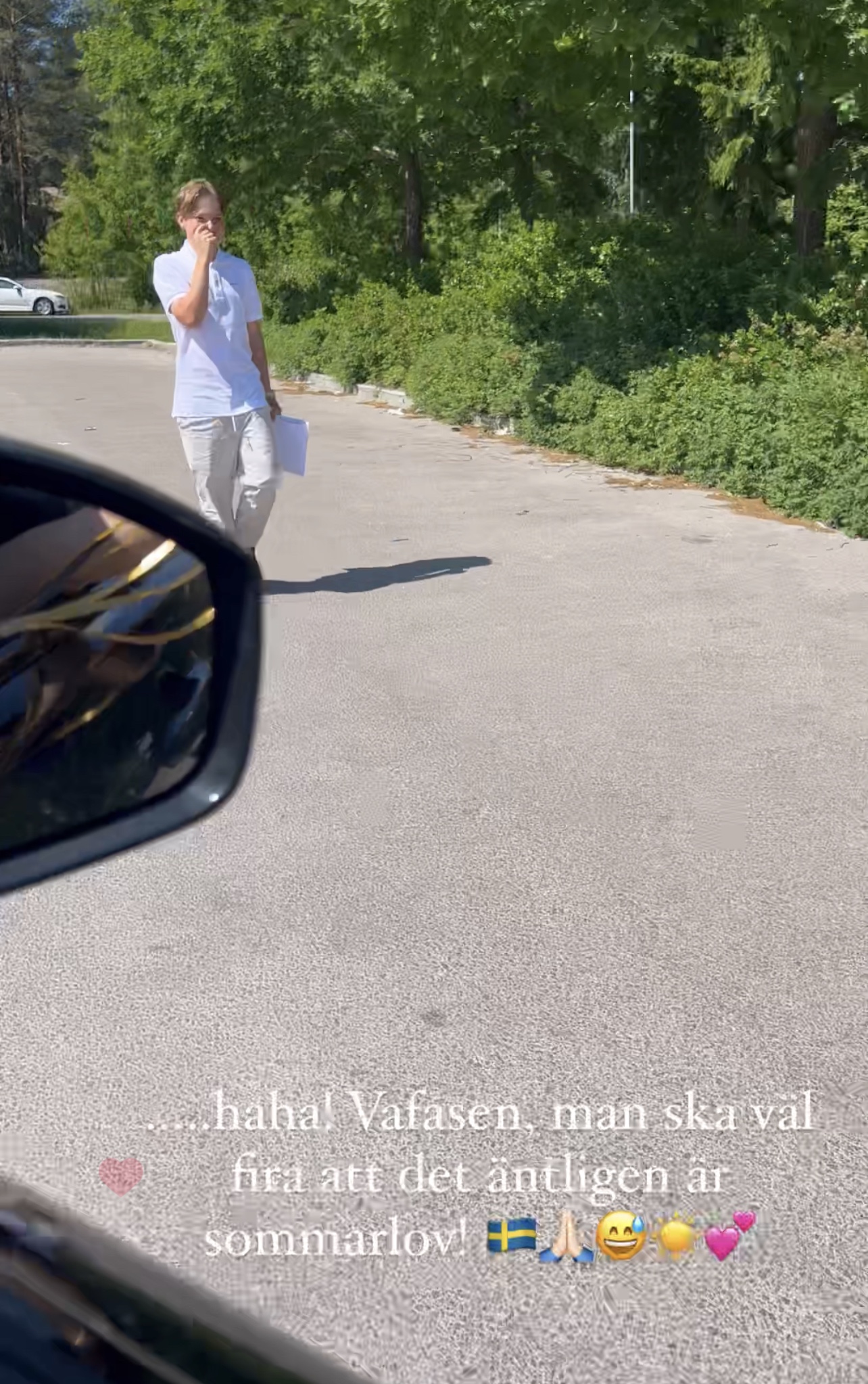Vi var världens pinsammaste föräldrar som kom med ballonger flygandes ur framrutan. Haha, lite kul måste man få ha med de små liven. Det var inte många som stod där heller som tur var för honom. 😂