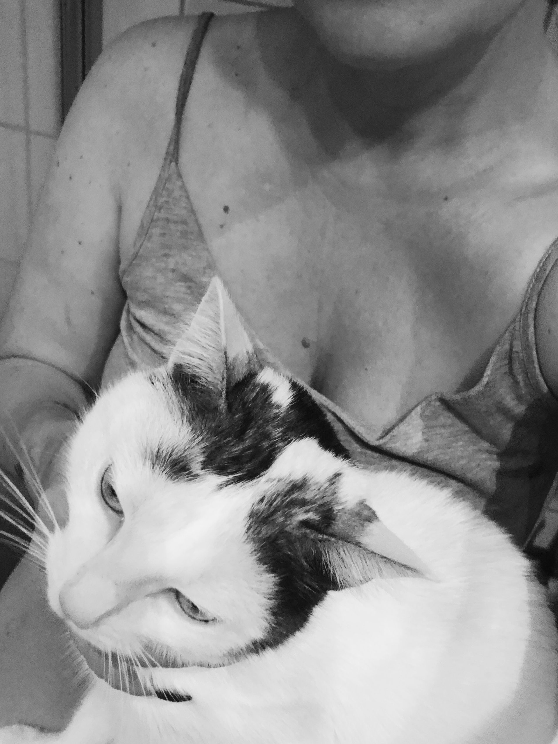 Jo, sen ser det ut såhär när jag går på toaletten. Jag får ALDRIG vara ifred. Sitter jag på toa så hoppar hon upp i mitt knä. Hon känns som en svans, där jag är där är hon. Som en skugga följer hon mina steg. Går jag och lägger mig blir jag förvånad om det tar mer än 3 minuter för henne att också komma och lägga sig.