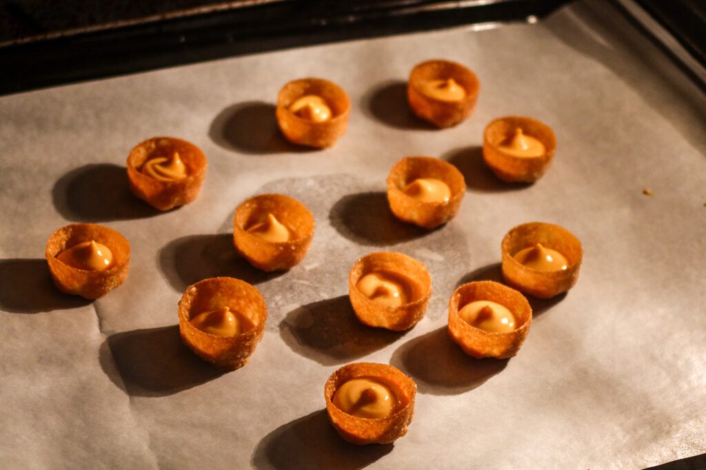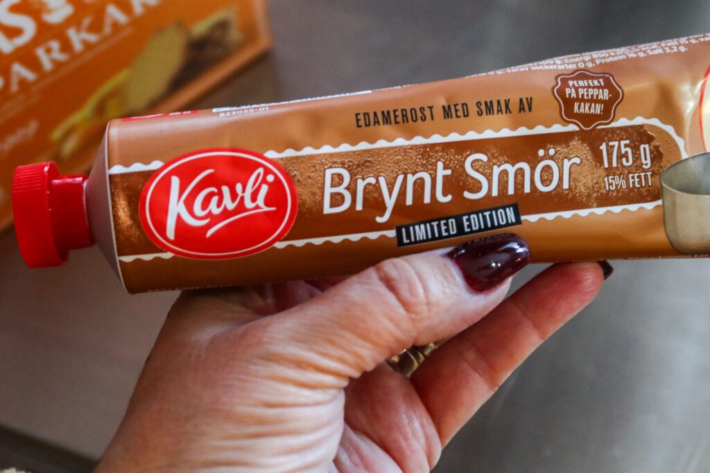 Köp färdiga pepparkakor, jag köpte original och de med apelsinsmak. Tips tips! Galet gott med apelsin i pepparkakorna. Brynt smör från kavli, nej men hallegooooo vad ögonfransarna fladdrar alltså, huuur smaskigt? Jag älskar iofs allt med brynt smör, men denna var en höjdare!