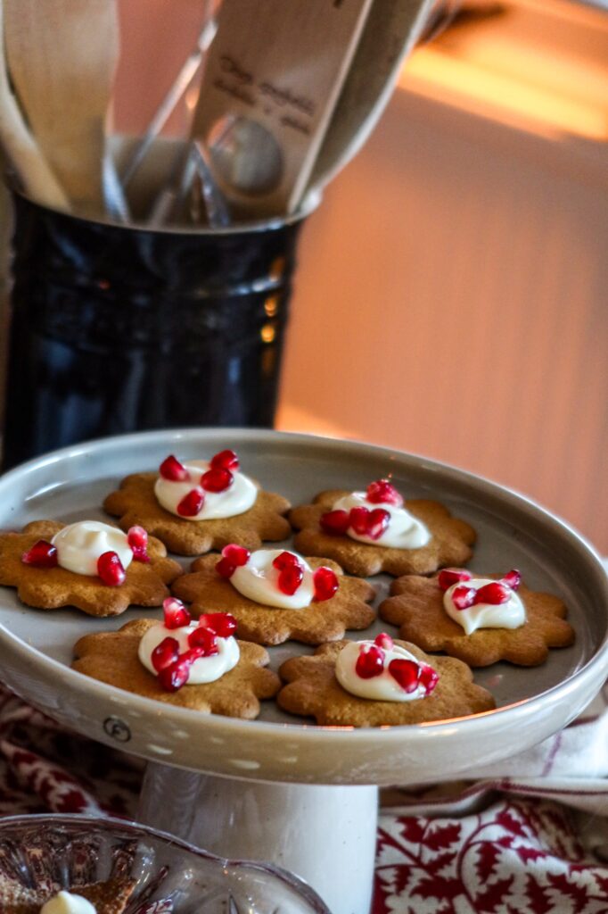 Pepparkakor med brynt smör ost och granatäpple. Denna kombon är magisk, så gott så gott! Pepparkakorna med apelsinsmaken var wow.