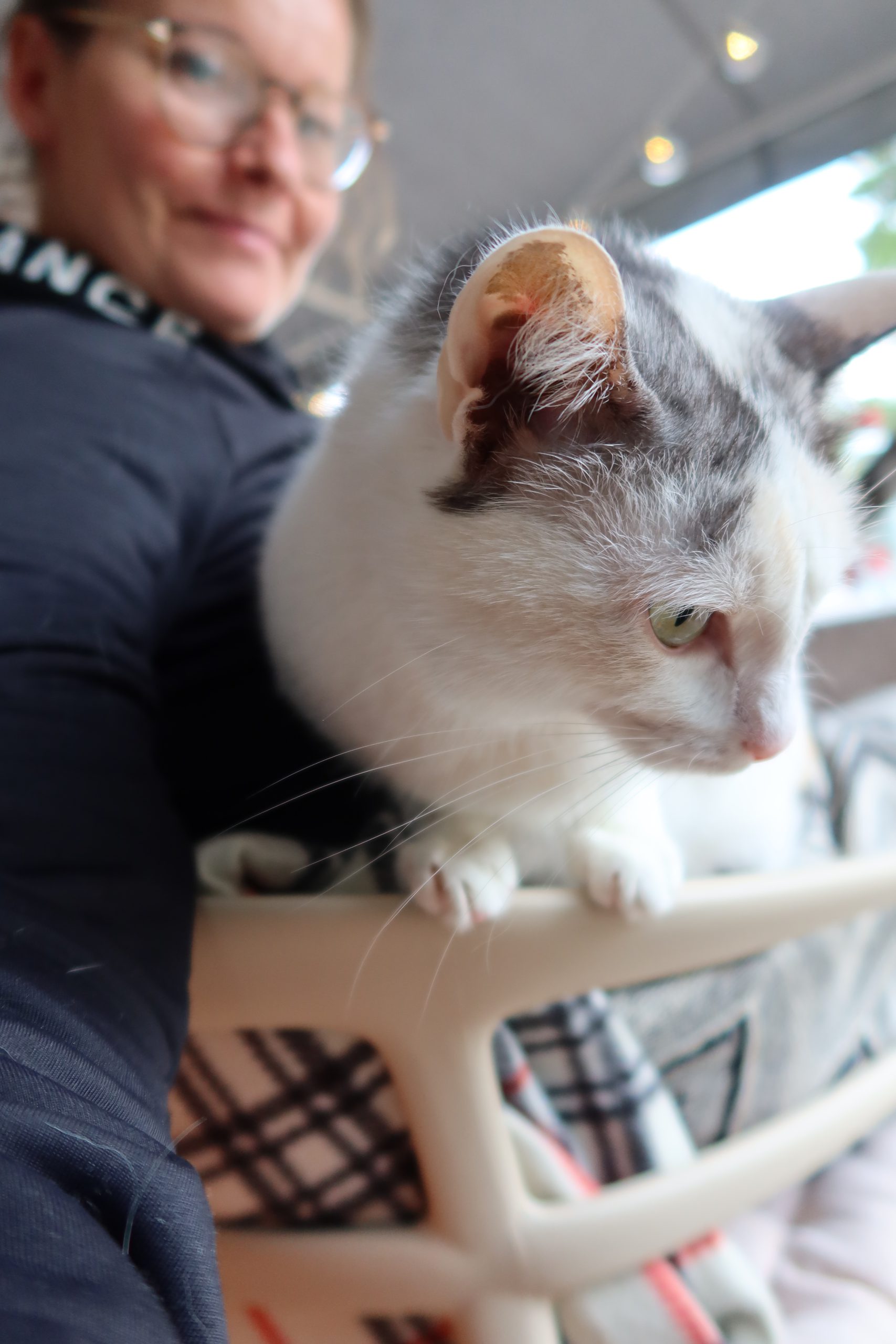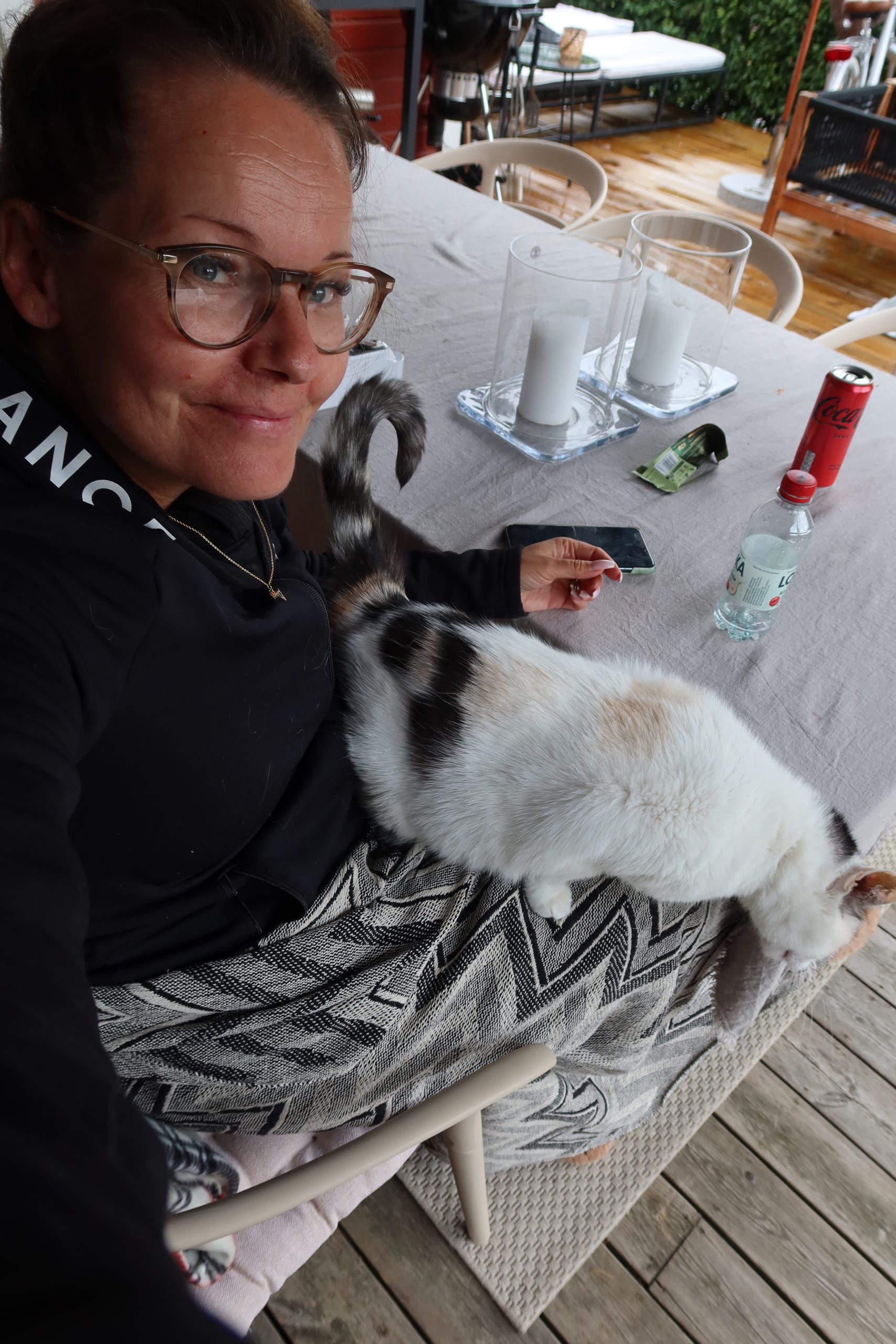 Så nu har hon varit ute lite på altanen i ett par dagar. Det har gått fint. Hon svävar inte ut nämnvärt men det spelar ju ingen roll. Att hon bara susar runt här där vi är, är ju såna framsteg så det är inte klokt. Hon är också chippad sen hon bodde på ”Hitta Katten” så den biten är kirrad.
