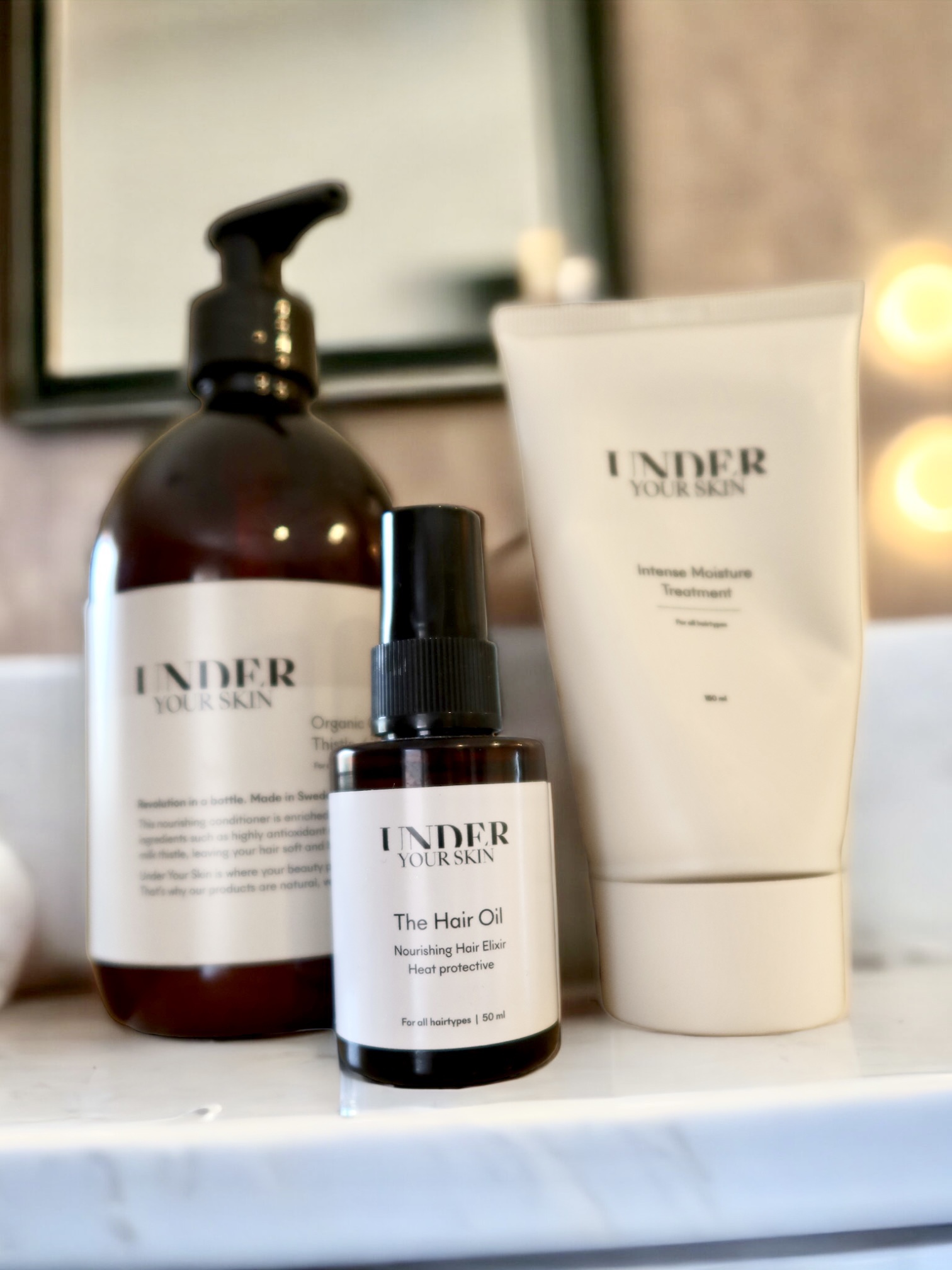 Ni är många som frågar efter rabattkod till Under Your Skin, blir så glad att ni är så många som också fått det märket som ert favoritmärke. Ett naturligt, ekologiskt märke helgmaten farliga kemikalier. Jag använder som sagt inget annat och har inte gjort på ett par år nu. Älskar hur mitt hår blir av dessa produkter. Känns friskt, fräscht och välskött. Det absolut mest positiva är att jag inte tvättar det mer än en gång per vecka, häromveckan tränade jag så mycket så jag blev tvungen att tvätta det 2 ggr (bara för att jag svettades så mycket). Blev nästan irriterad, haha….jag är ju van att bara behöva tvätta det 1 gång per vecka.