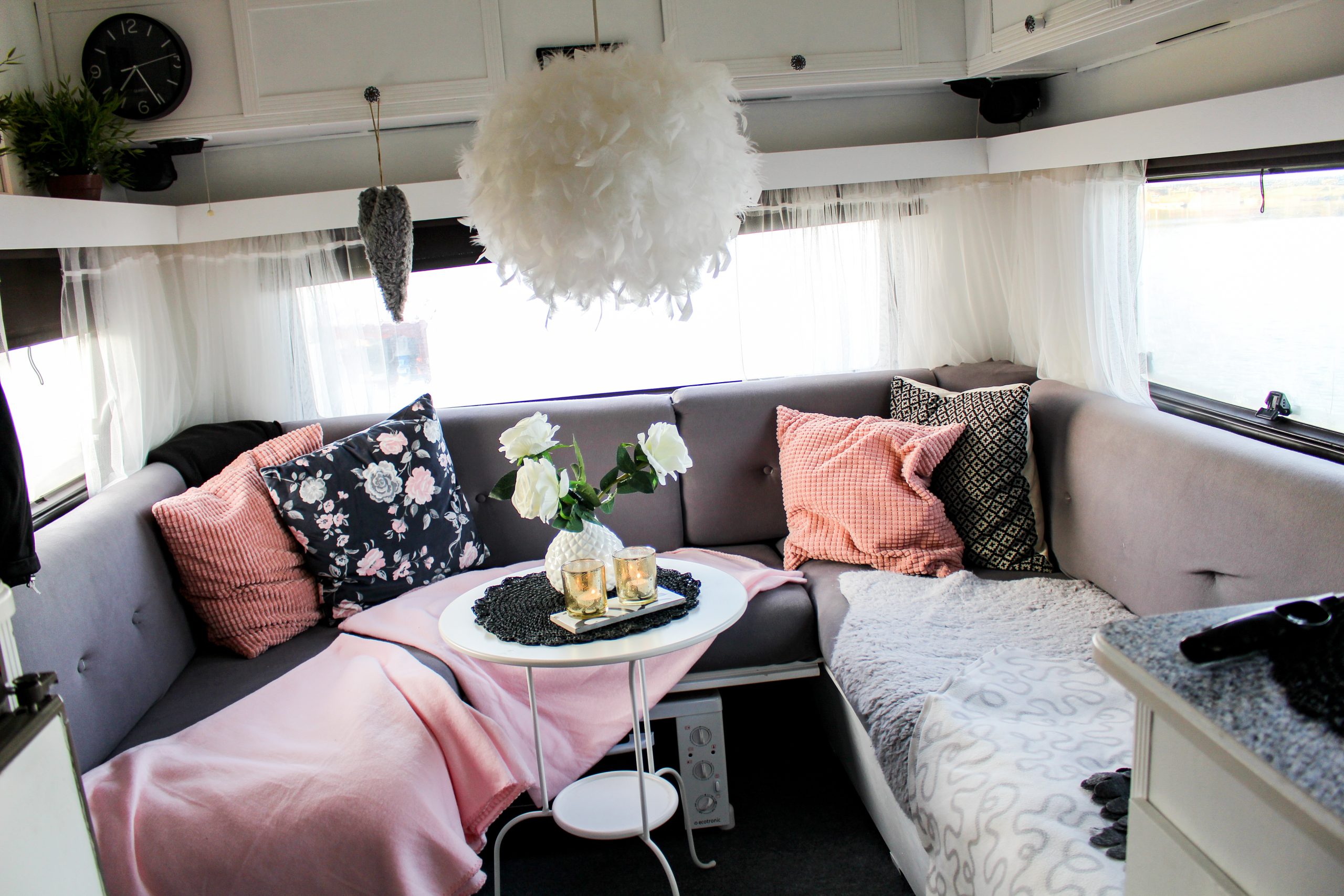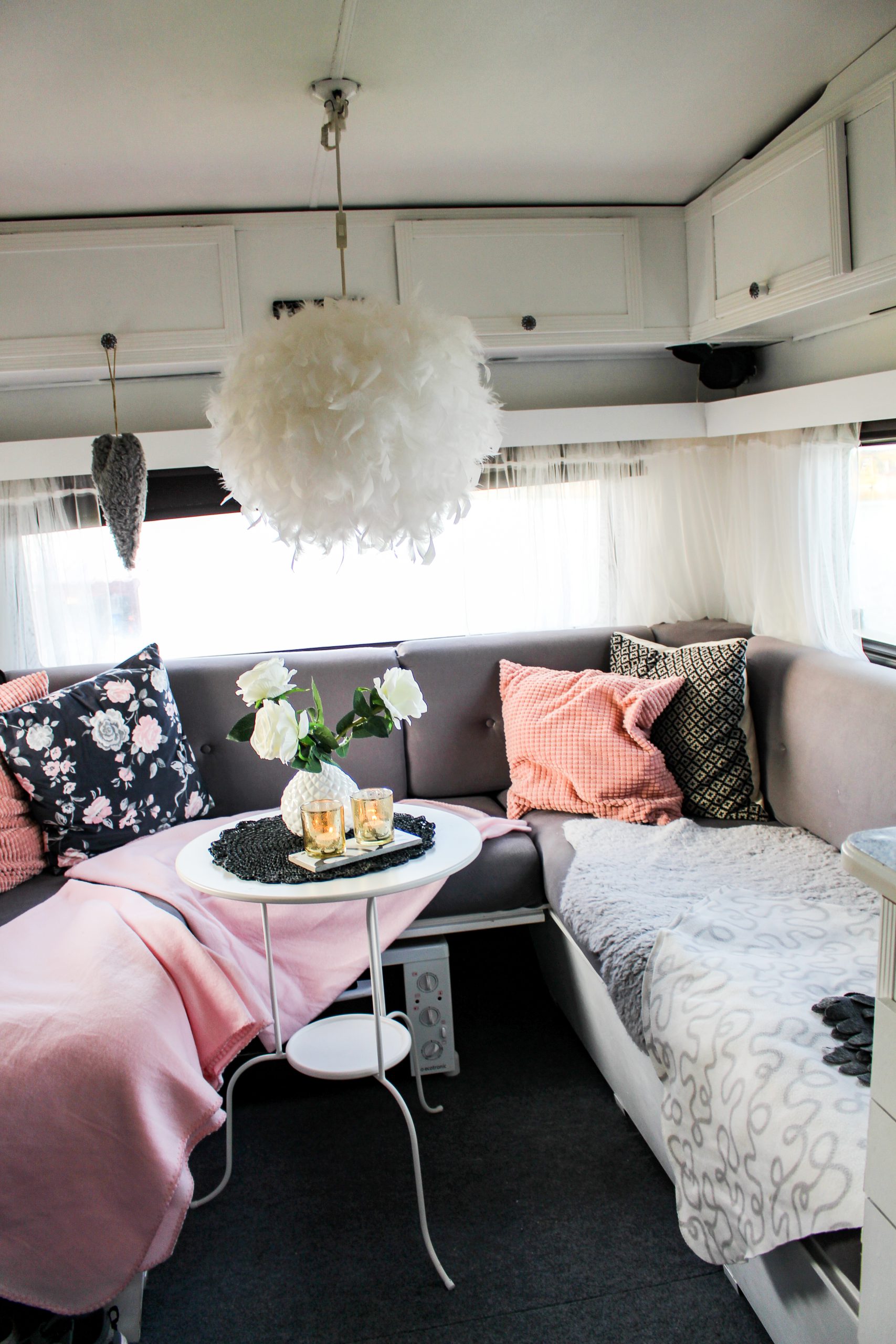 Jag har klätt om dynorna och målat vitt överallt. Kika gärna in här https://niiinis.se/category/vagnhild/, där finns allt som har med husvagnen att göra.