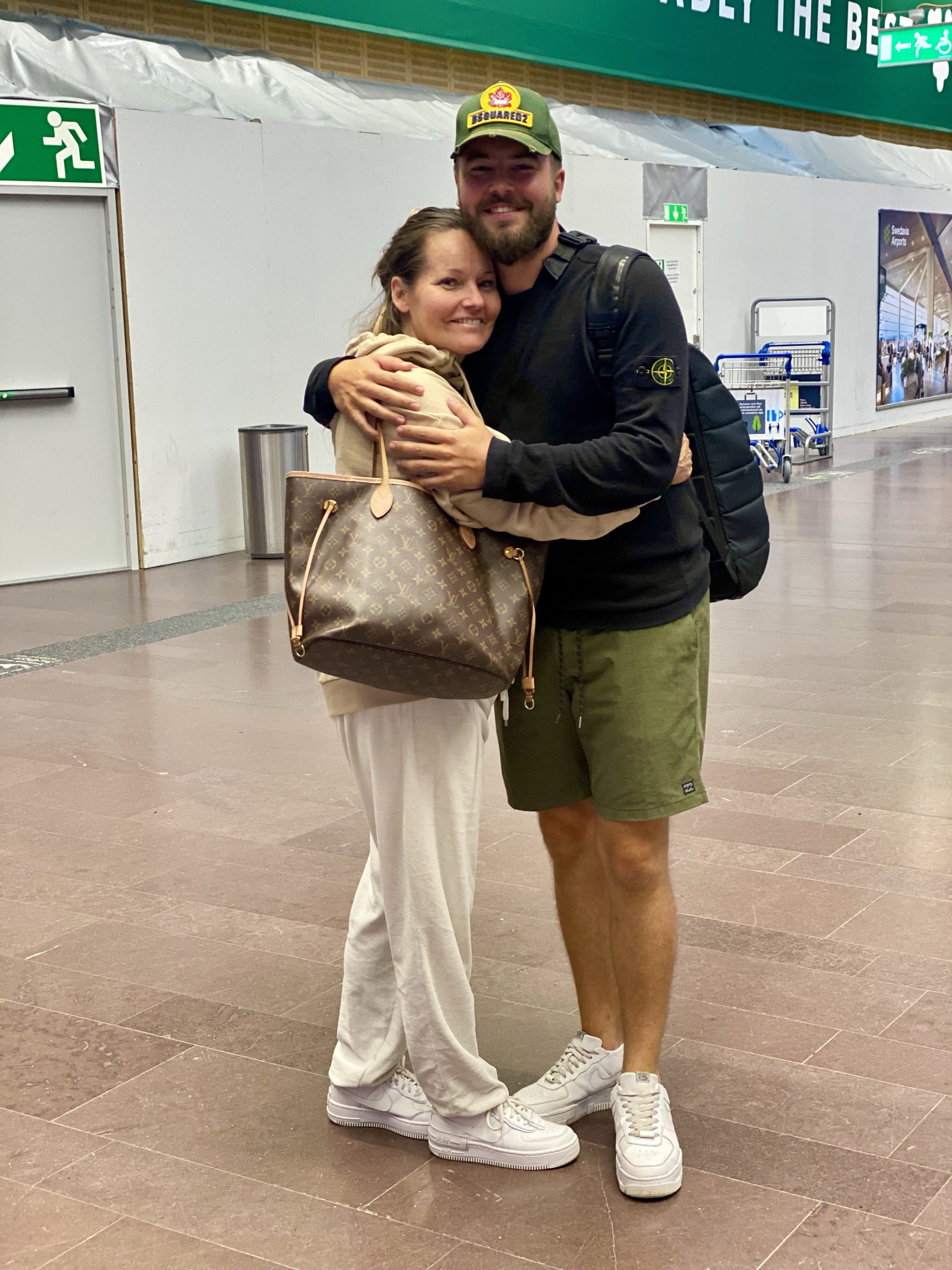 Ja men visst stod jag där på Arlanda och bölade så snoret rann igen. Jag försökte hålla mig ända in i det sista men den där sista kramen…. Den när man står där och känner in honom en sista gång, att få vara nära en sista gång innan han åker igen och blir borta…ja hur länge? Fy fasen, den tar kål på mig alltså. Hulkgrät lite. Gick in på pressbyrån efteråt och lät tårarna rinna medan jag handlade av killen i kassan. Jag ursäktade mig ändå lite och sa ”Förlåt, jag står här och gråter för jag har precis vinkat av min son”. Killen i kassan var så himla gullig. ”Har han åkt och pluggat utomlands?” frågade han. Jag förklarade att han arbetar som innebandytränare i Schweiz. ”Jag förstår” sa han. ”Men allt är som det ska, han gör helt rätt” fortsatte han. Gud vad jag behövde höra det där just då. För han har ju helt rätt.