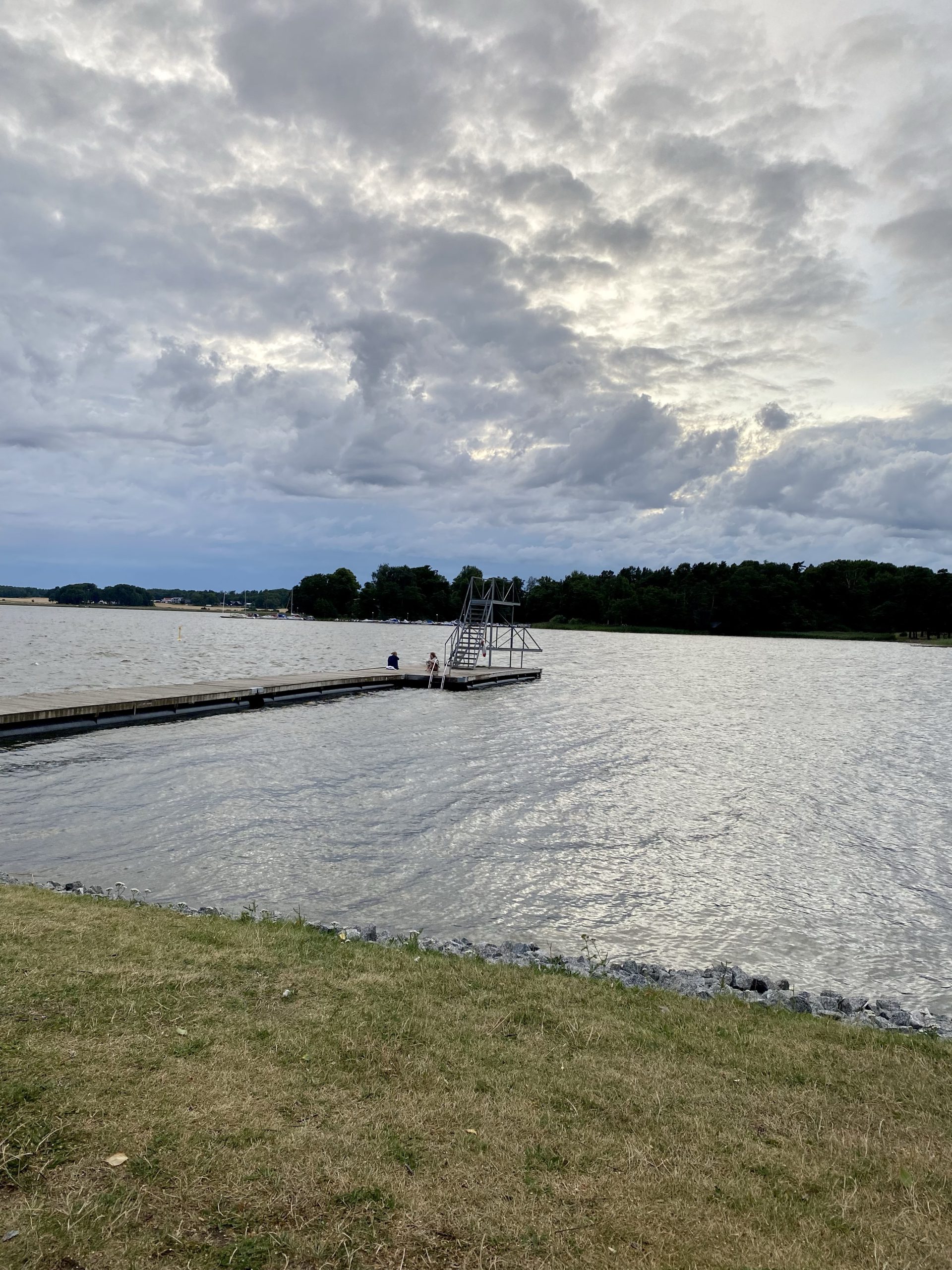 Mot kvällningen åkte vi ut till Bredsand så Milo fick bada. Eller mest hoppa från hopptornet. Regnet hängde till slut över oss så då gav vi upp och åkte hem till soffan.