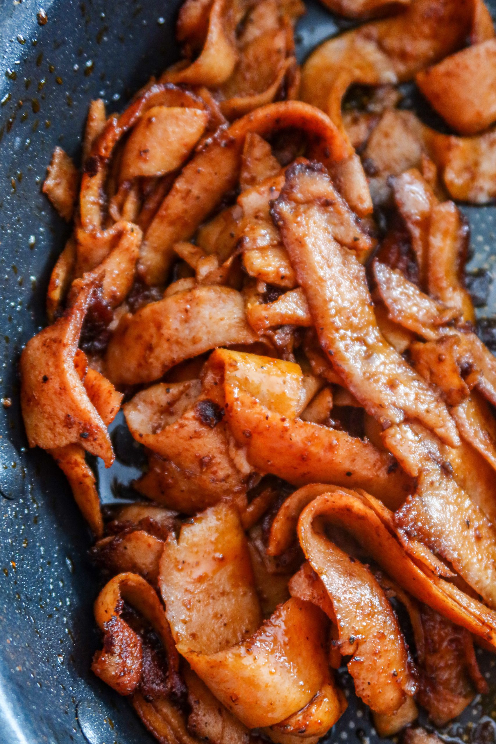1) Hyvla tunna bitar ur falukorven med en osthyvel. Tycker du det är svårt så är det många som fryser korven lite innan. Stek dem i lite olja, ha sedan i kebabkryddan och salt. Stek runt tills det har blandats runt ordentligt.