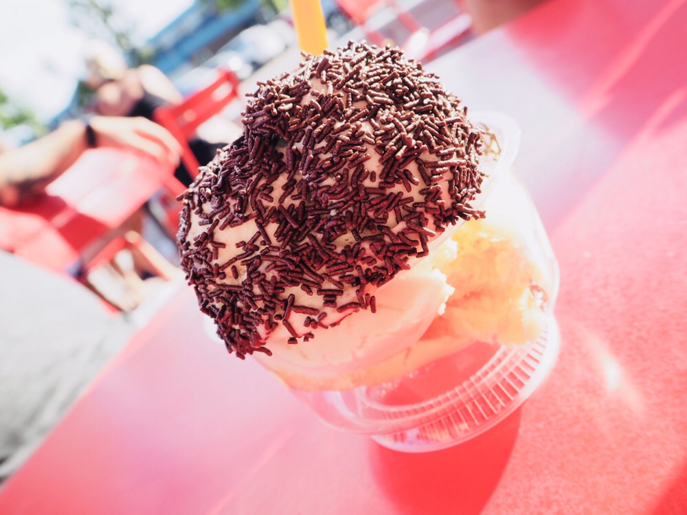 Självklart testade vi glassen från Slagsta! Jag tog laktosfri, päron och mango persika. Så gott!