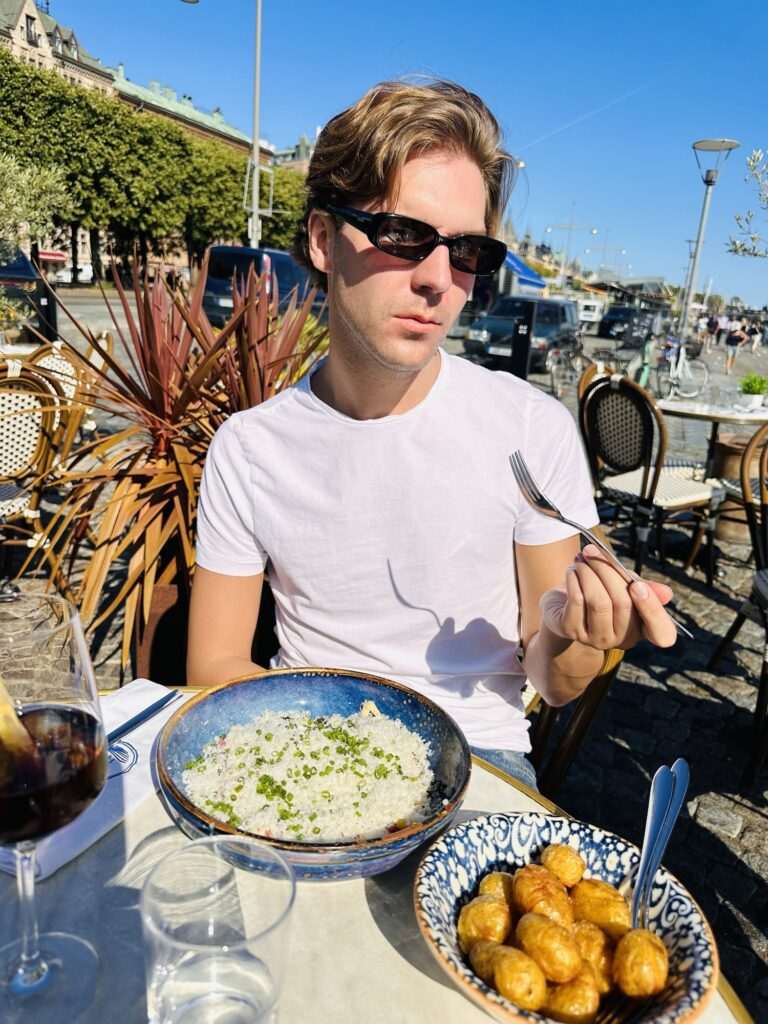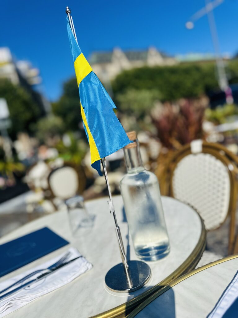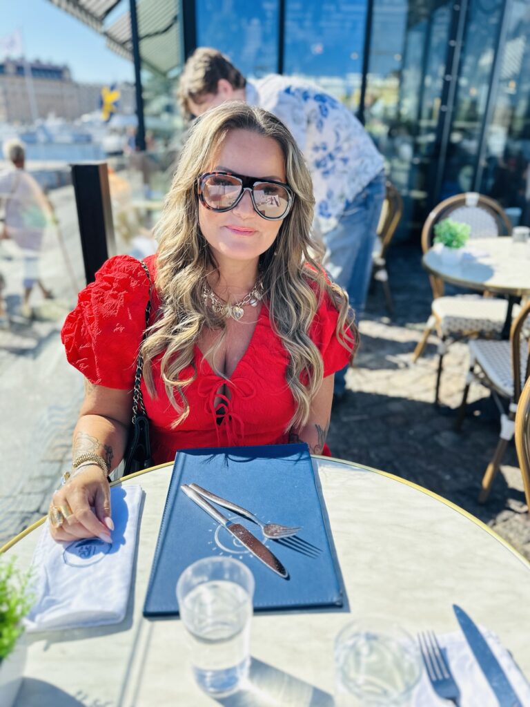 En av mina absoluta favoritplatser är Glashuset så jag blev väldigt glad över att vi skulle äta födelsedagslunch där. Ligger precis vid vattnet, så härlig atmosfär och jag skulle kunna sitta där en hel dag och bara glo på folk. Testa förresten deras burrata – den badar i en så härlig ”dressing” med balsamico och basilika, spröda levainkrutonger som är som ett smul, så goda cocktailtomater – alltså världsagod. Tony hade tydligen sagt att jag fyllde år så vi fick en flagga och jag blev bjuden på ett glas alkoholfritt bubbel. Så fint!