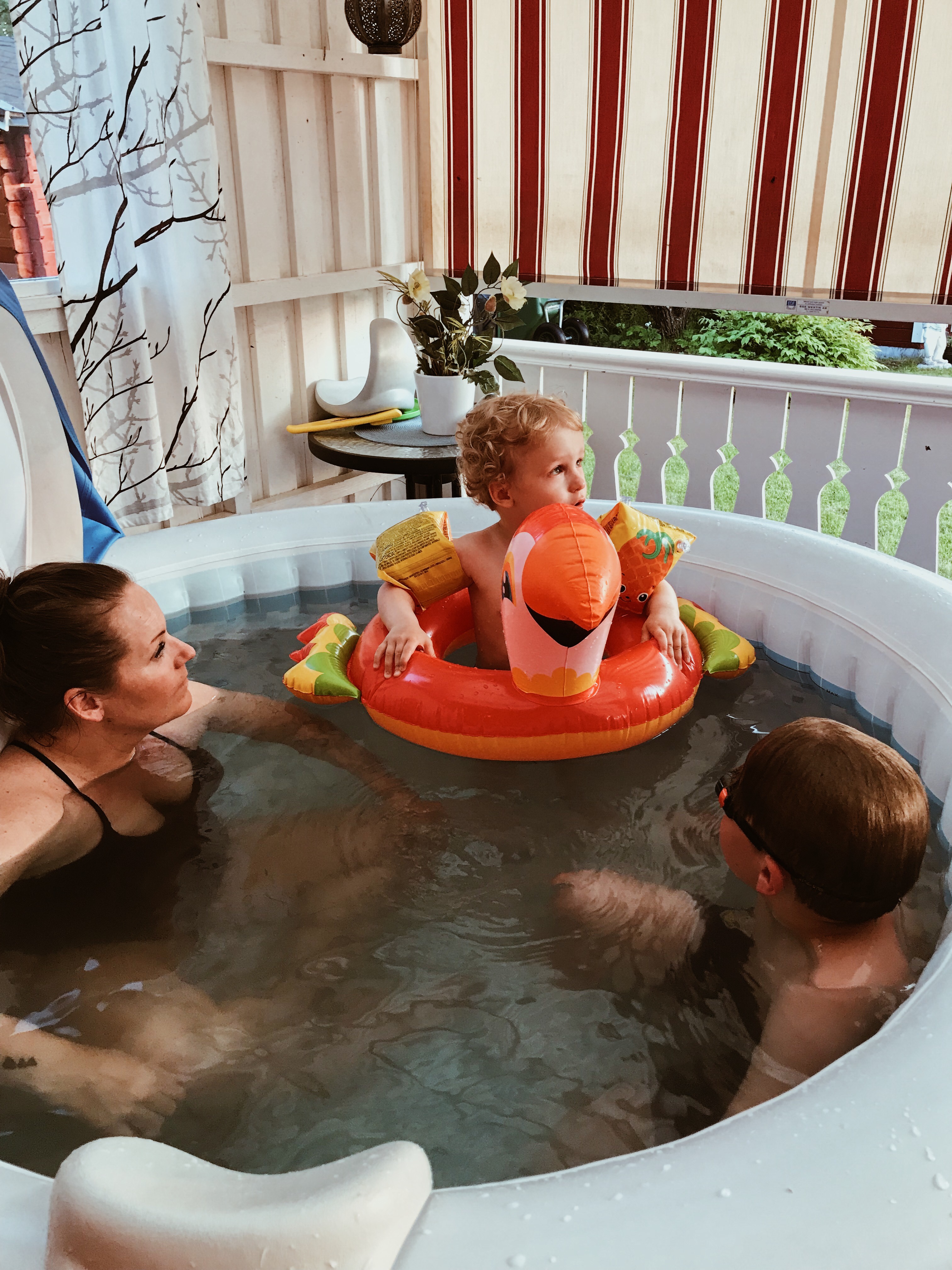 Så mysigt att bada med de här två sen. Så himla mysig avslutning på kvällen.